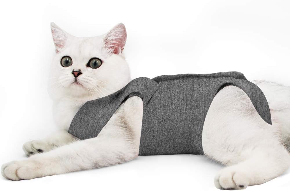 Doton Котешки нашийник за следоперативно лечение на коремни рани, кожни заболявания, възстановяване от операция, костюм, алтернатива на електронен нашийник за котки и кучета след операция, размер m, сив