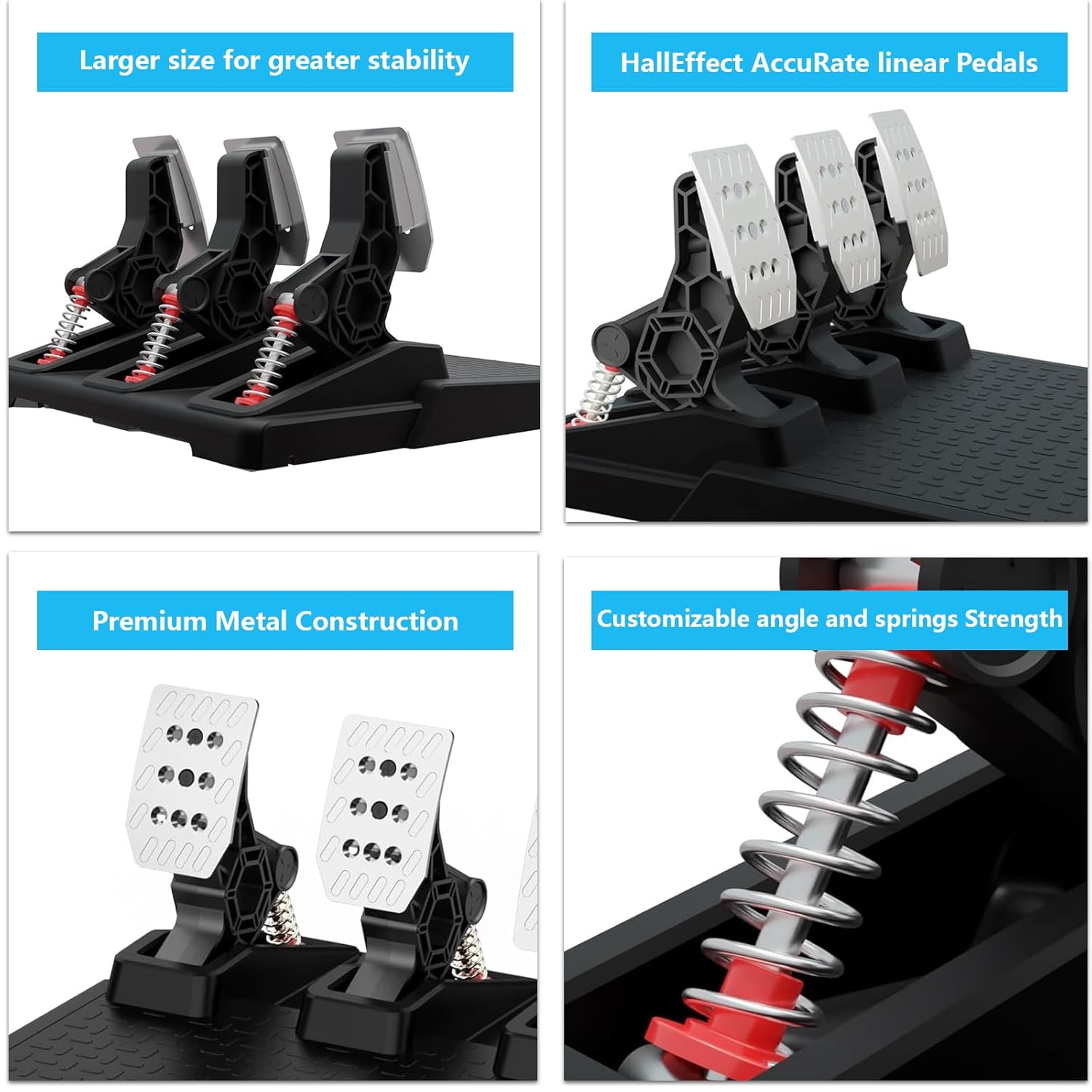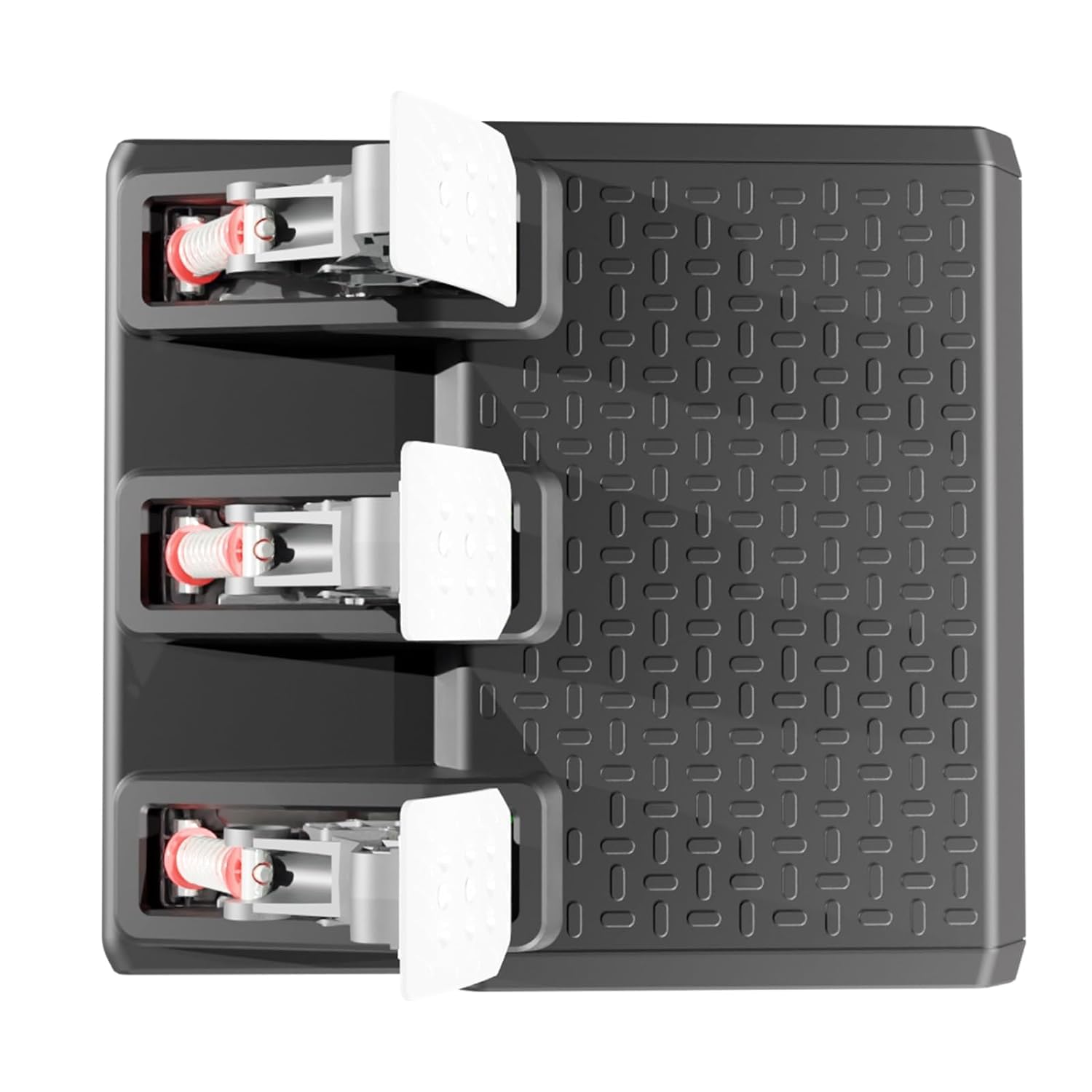 3. Регулируема пружина за фина настройка на вашите игрови настройки. Всеки педал е оборудван с две пружини за бързо и лесно регулиране. Регулирайте натиска на спирачния педал според вашите предпочитания и си осигурете перфектно прилягане към вашата състезателна конфигурация, независимо дали е маса или бюро, професионална междуосие, GT кокпит, F1 кокпит и други. Регулируемият диапазон на опъване се простира от 2,9 килограма до 6,2 килограма, осигурявайки персонализирано изживяване.
