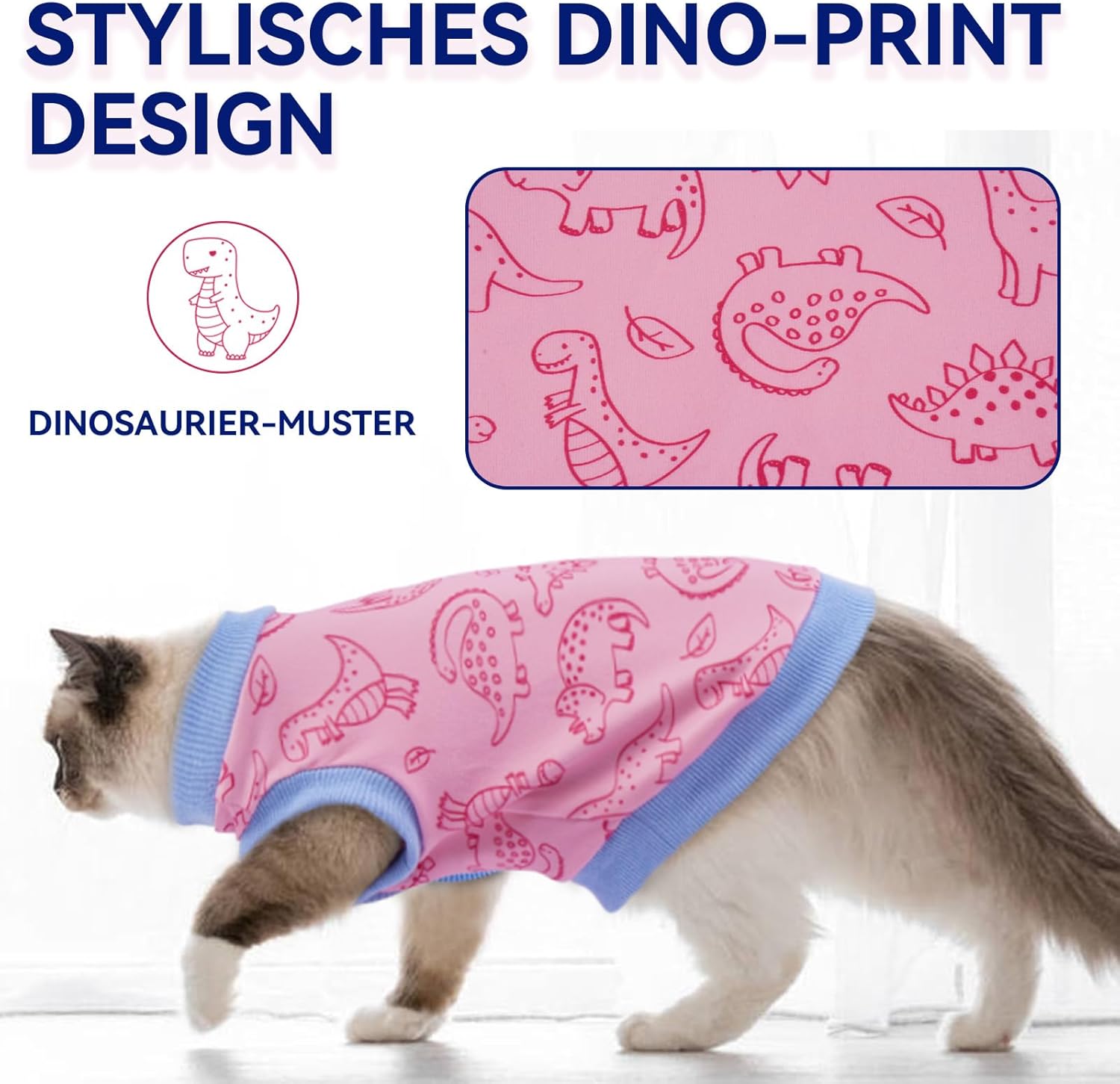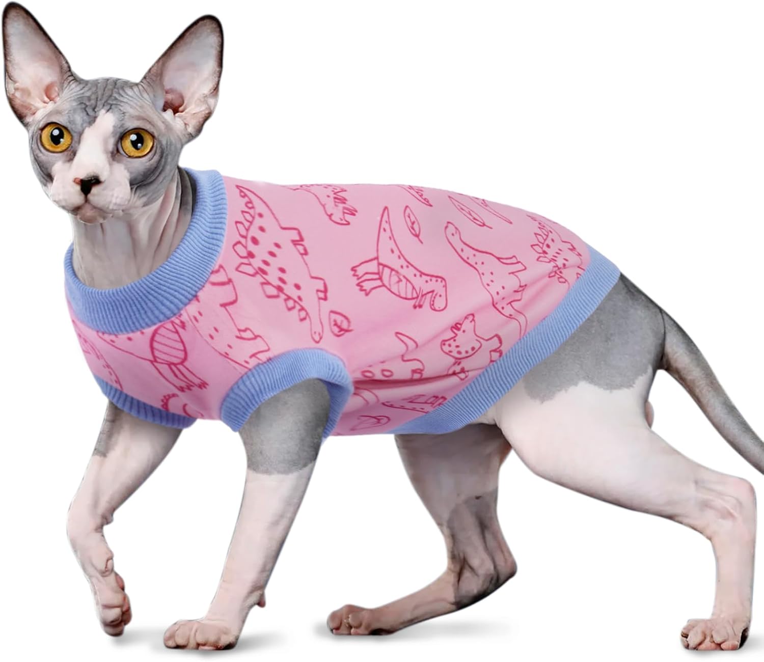Dralon поларена жилетка без ръкави за котки - с динозавърски принт за сфинкс и всички породи - дишащи котешки дрешки за зимата и през цялата година - мека и щадяща кожата, розова S