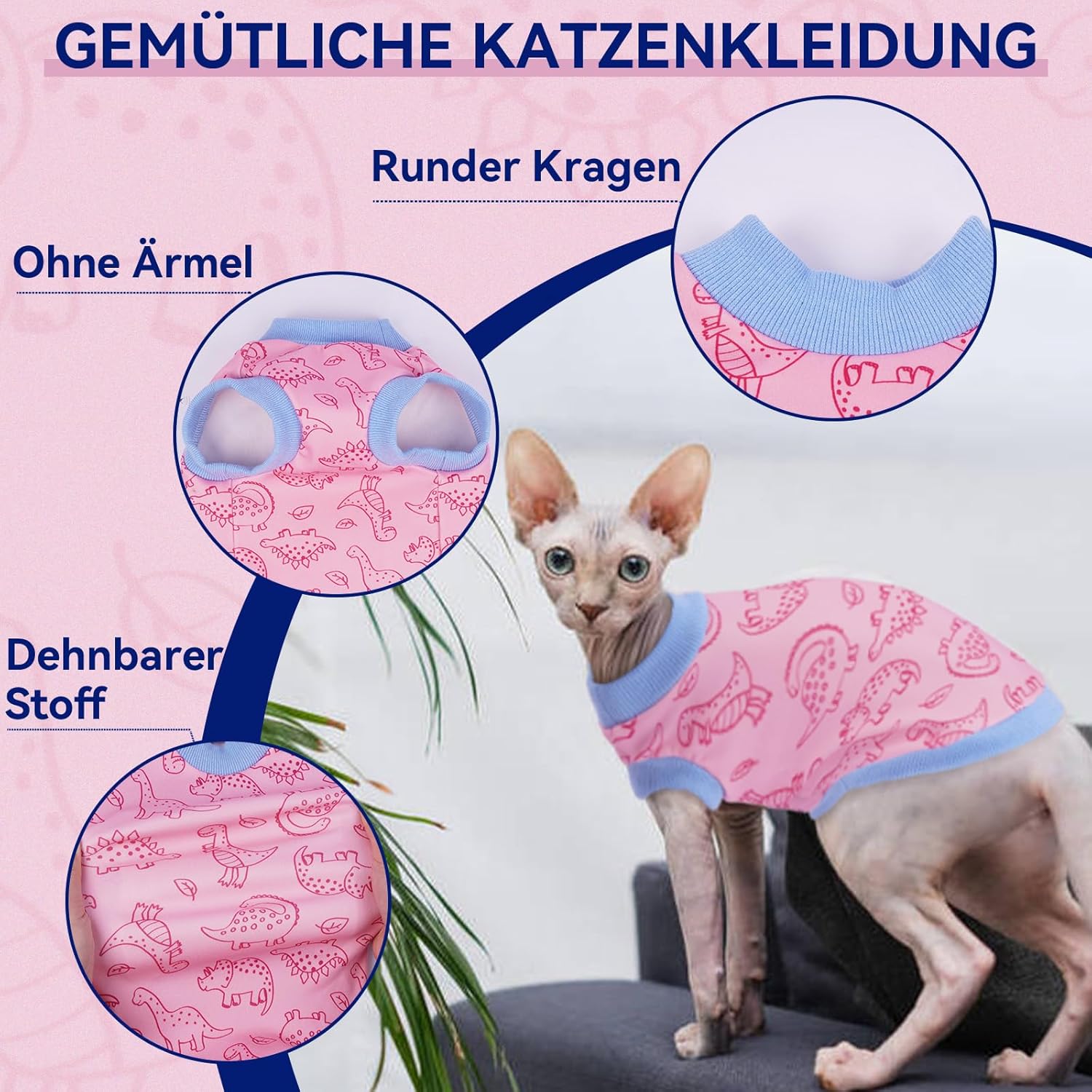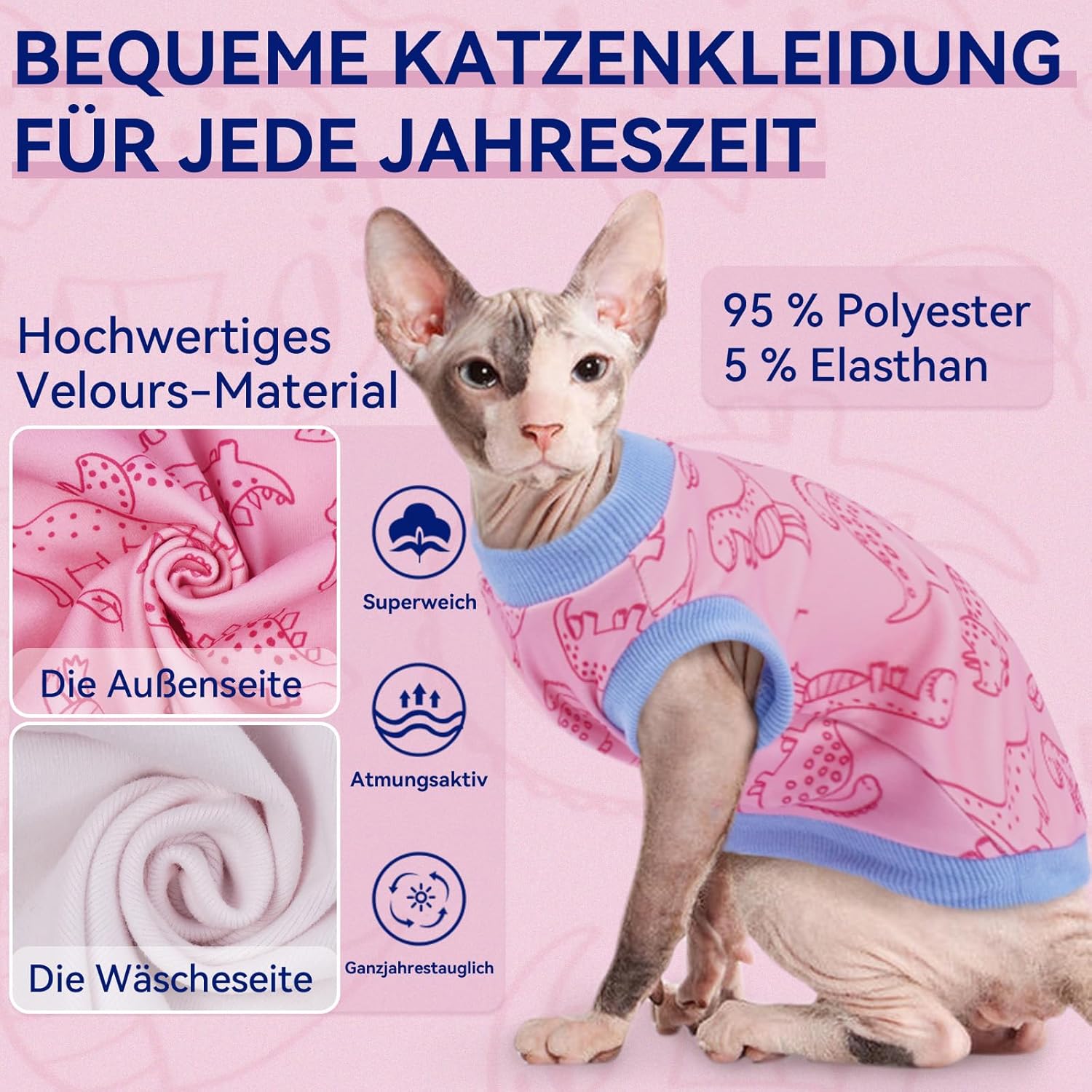 Dralon поларена жилетка за котки без ръкави - с динозавърски принт за сфинкс и всички породи - дишащи котешки дрешки за зимата и през цялата година - мека и щадяща кожата, розова L
