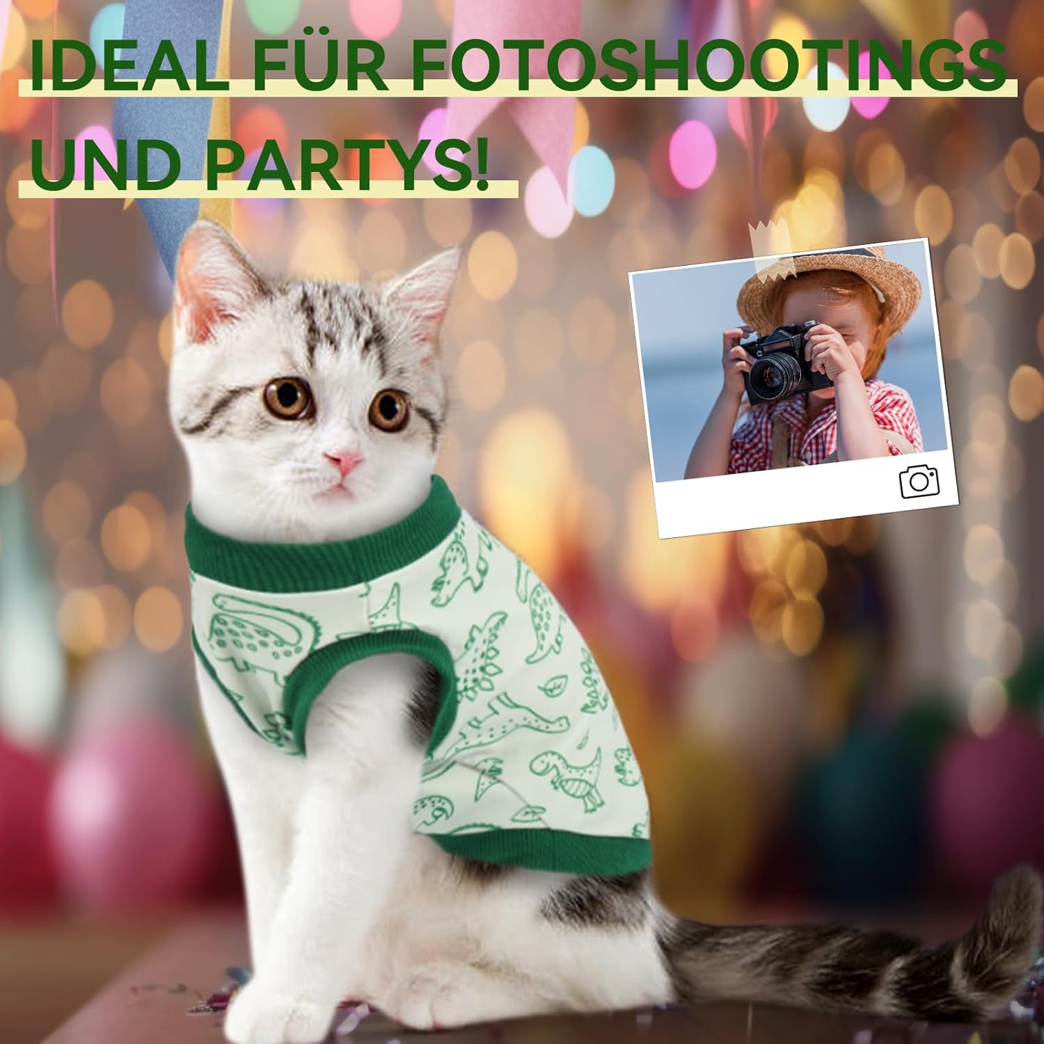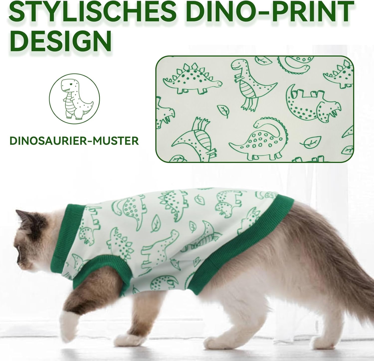 • Сладък принт с динозавър. Блузката без ръкави с котка има уникален дизайн със сладък принт с динозавър, който изглежда стилна и игрива. Често ли искате да правите красиви снимки на вашата котка? С тази блуза вашата котка ще бъде атракция - независимо дали играе на закрито или се разхожда навън.