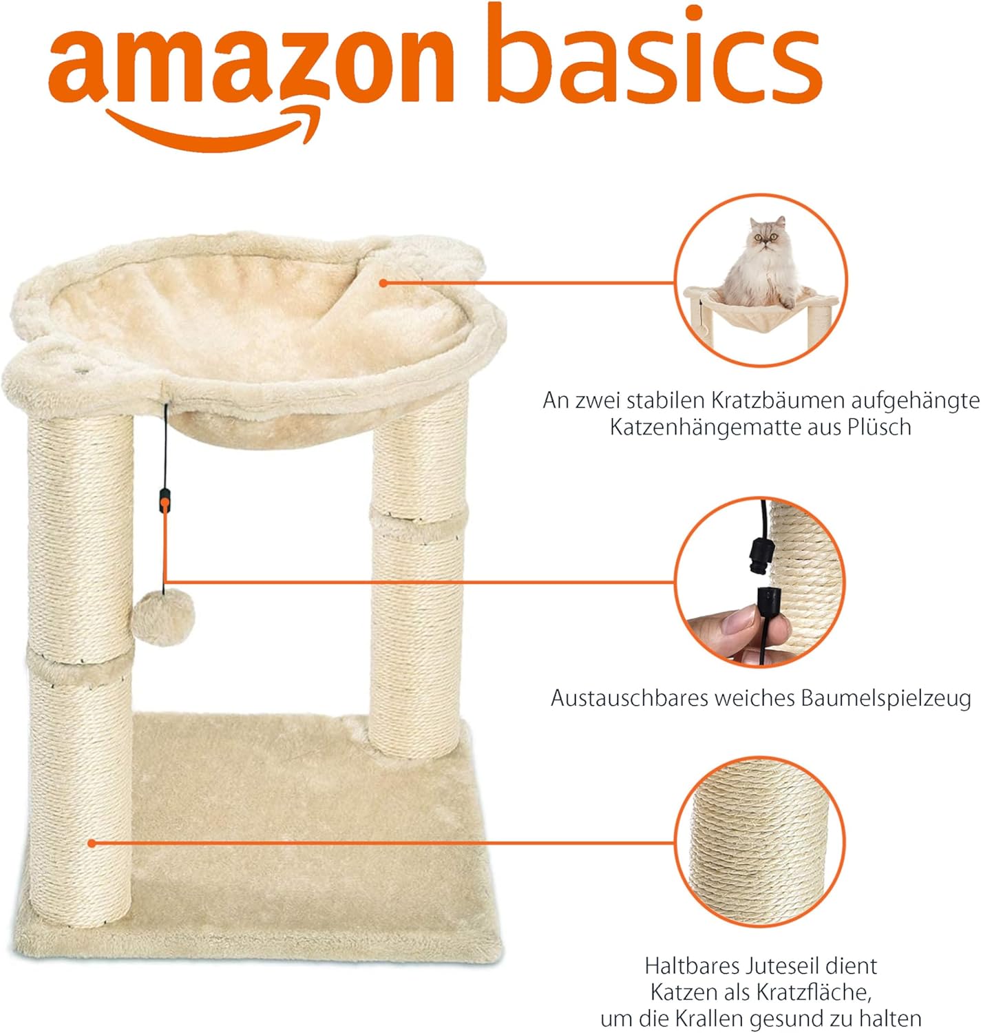 Драскалка за котки Amazon Basics с къщичка, хамак, легло и драскалка, 41 x 51 x 41 см, бежова