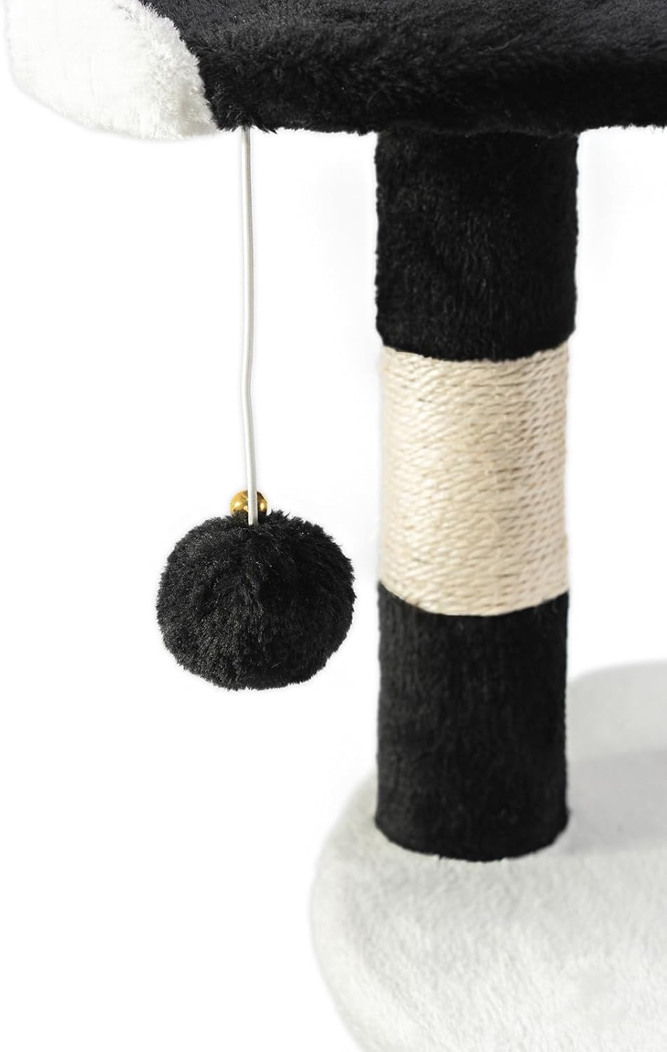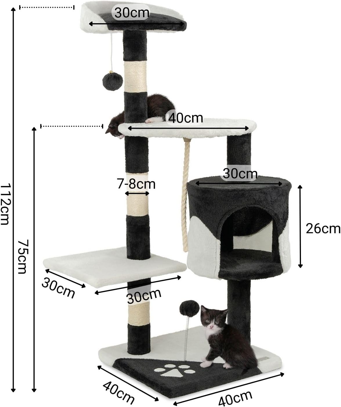Тази висококачествена пещера ви кани да си починете и да се скриете. Двете плюшени топки осигуряват необходимото забавление. Едната от плюшените топки за игра виси под горната платформа, а другата е подвижна върху основната плоча. Стълбовете са изработени от здрав сизал, а допълнителното сизалово въже осигурява опора за нокти. Инструкциите за монтаж са лесни за разбиране и се доставят със съответния комплект винтове и стенна скоба.