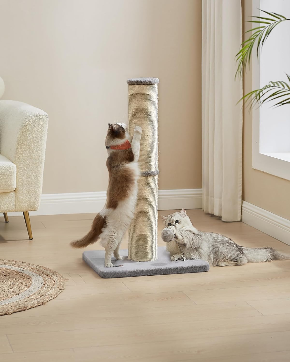 Драскалка за котки Feandrea, височина 85 см, XL драскалка, дебелина на ствола 13 см, дърво за котки, драскалка за средни и големи котки, сизалова с плюшена топка и звънец, гълъбово сива PCA041G01