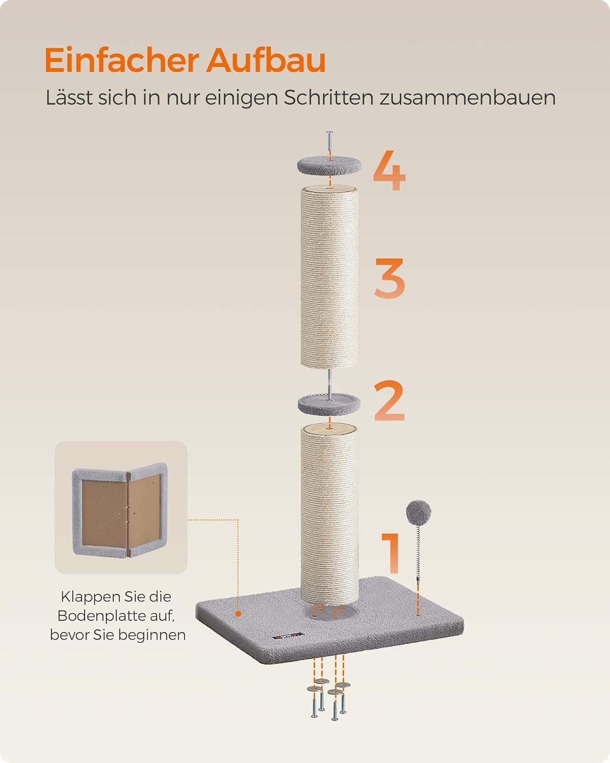 • Подсилена основа, повишена стабилност: с основа 50 x 40 см и подсилена с допълнителни летви, тази сизалова стълба за котки осигурява стабилно и безопасно място за драскане, игра и катерене - без преобръщане