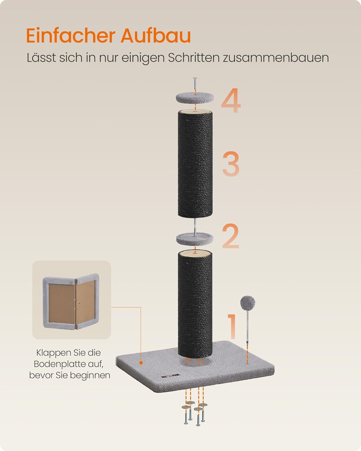 • Подсилена основа, повишена стабилност: с основа 50 x 40 см и подсилена с допълнителни летви, тази сизалова стълба за котки осигурява стабилно и безопасно място за драскане, игра и катерене - без преобръщане