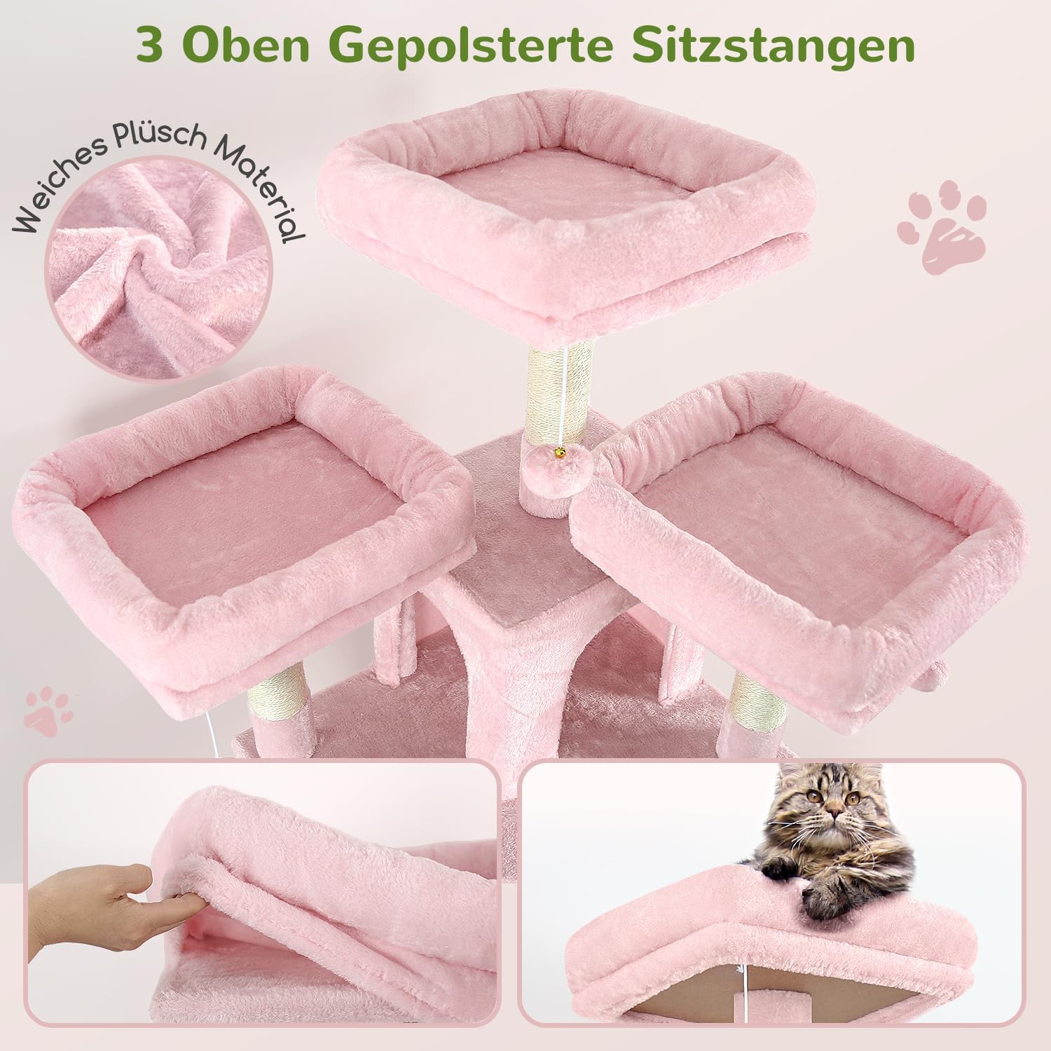 • 3 кацалки, които се свалят за почистване: горната част на дървото за котки е оборудвана с три подплатени кацалки, които предлагат на вашите котки идеален наблюдателен пункт за наблюдение на територията им. Кацалките могат да се свалят за лесно почистване.