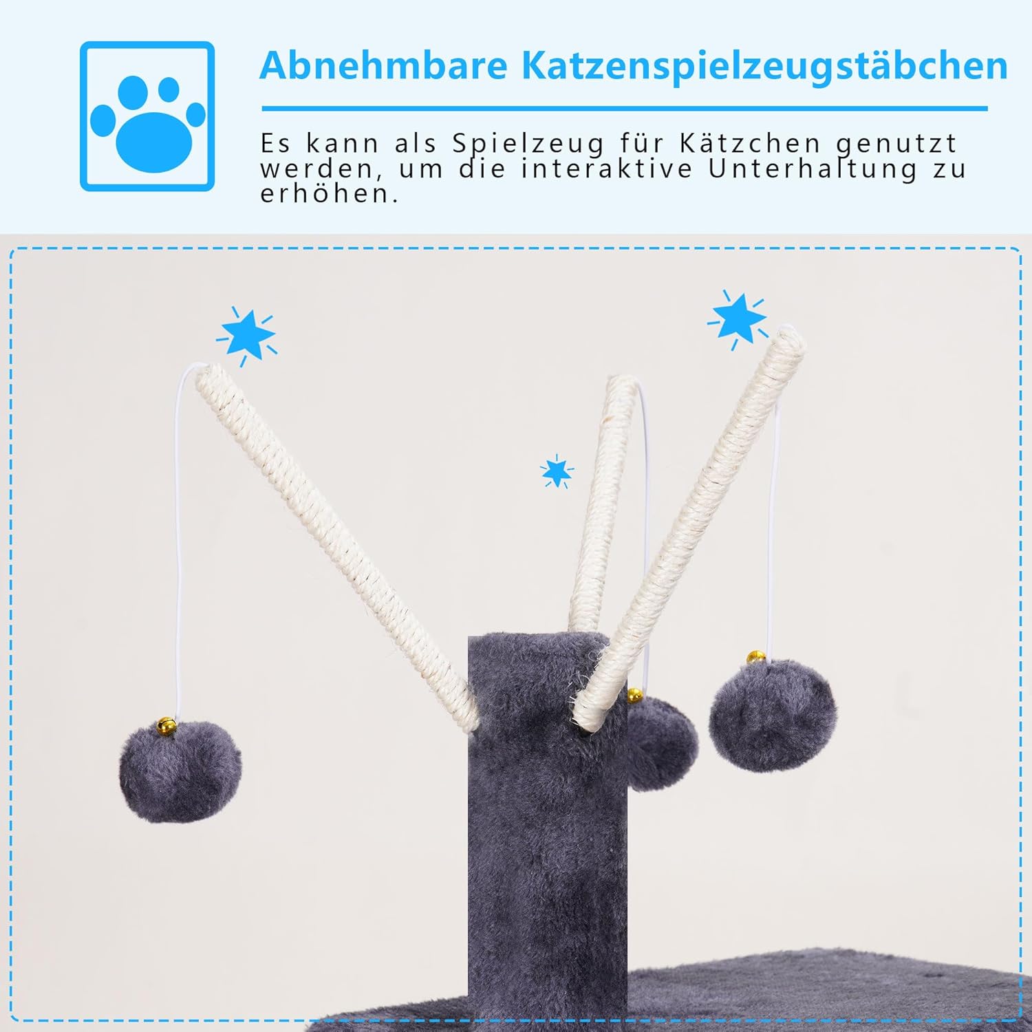 • Интересни интерактивни играчки: на това дърво за котки има подвижни играчки за риболов, пухкави топки и издръжлива сизалова дървесина, които могат да стимулират интереса на котките към играта и да задълбочат взаимодействието.