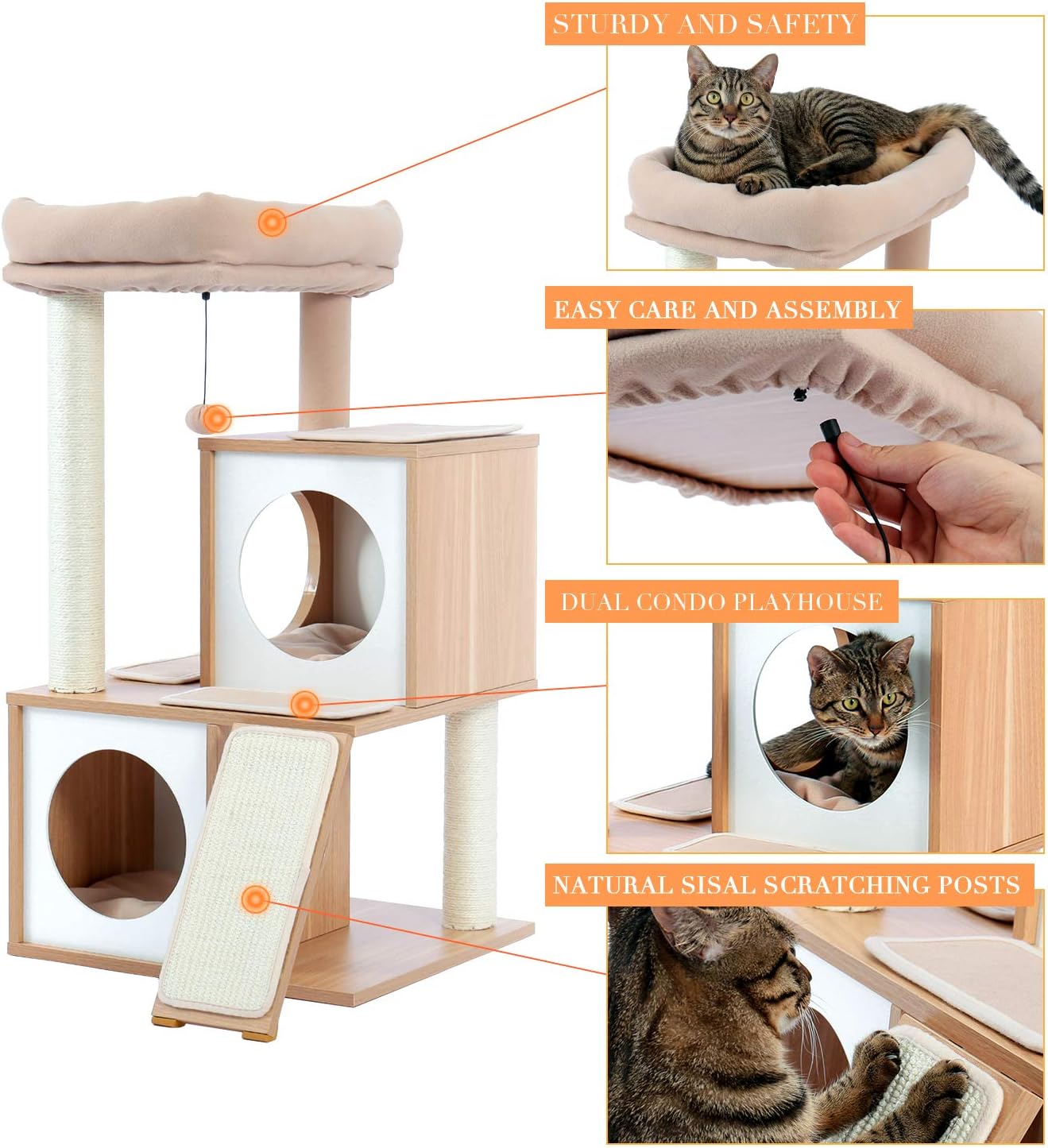 Оборудван със сизалов стълб, избраният сизал е 100% натурален и без химикали, което помага на котенцата да поддържат здравето на ноктите си.