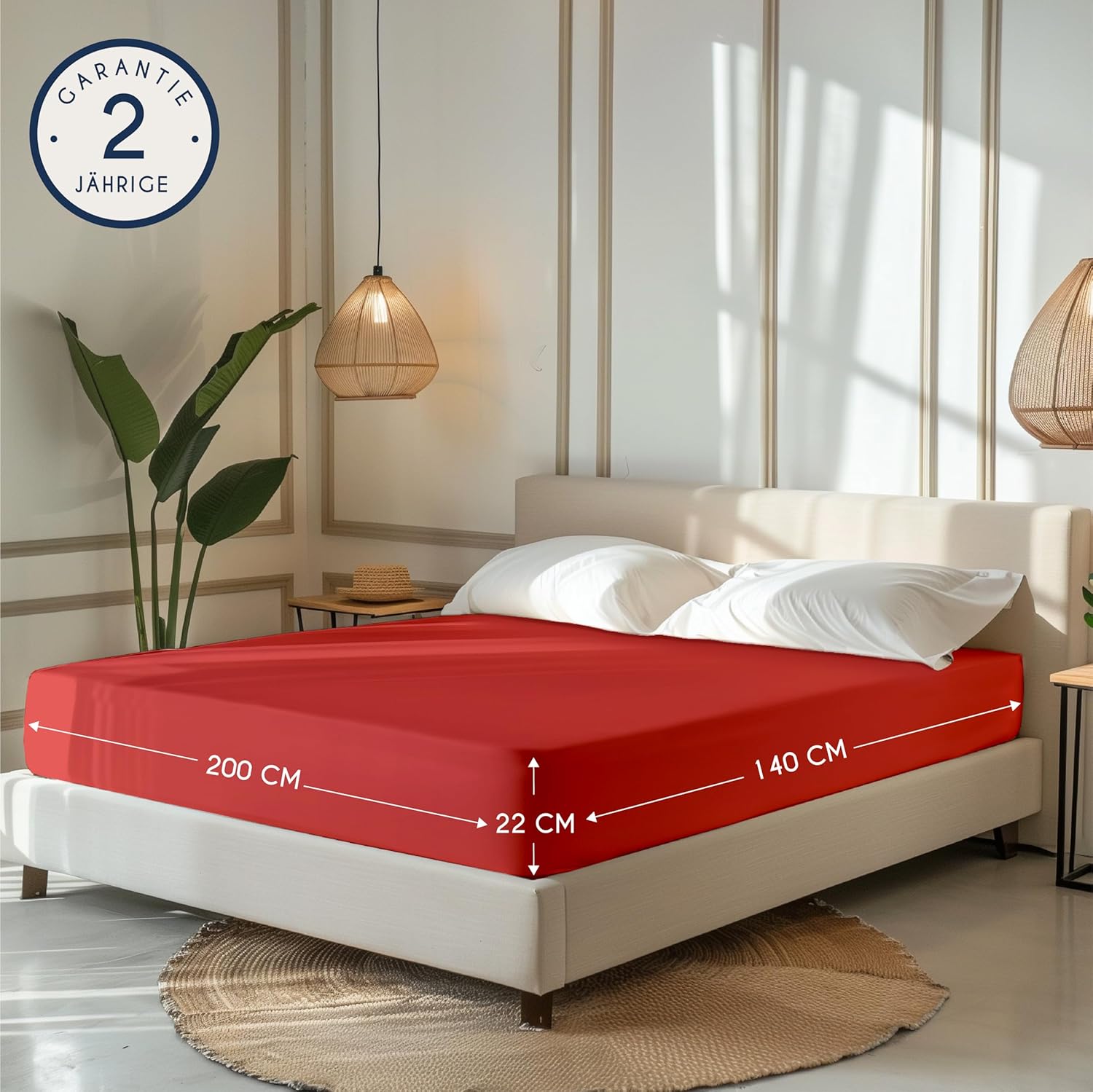 Dreamzie - Чаршаф с ластик 140 x 190/200 см - Памук, сертифициран по Oeko-Tex - Червен - 100% Джърси Чаршаф с ластик 140 x 190/200 см