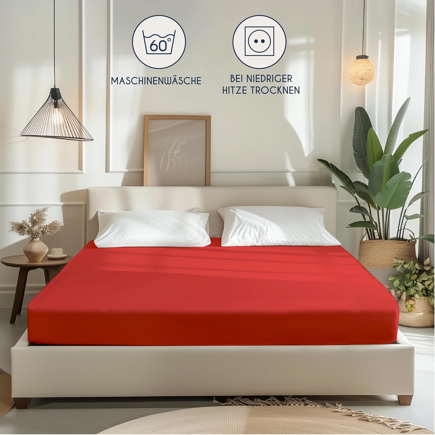 Dreamzie - Чаршаф с ластик 80 x 190/200 см - Памук, сертифициран по Oeko-Tex - Червен - 100% Джърси Чаршаф с ластик 80 x 190/200 см