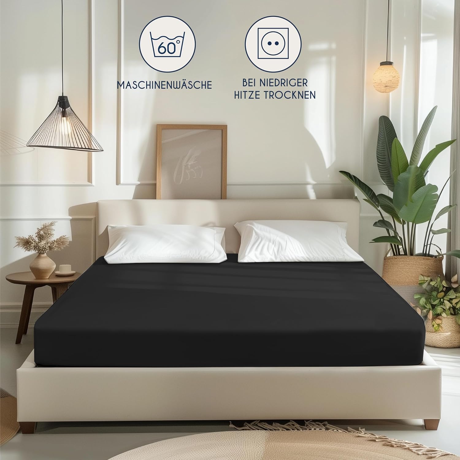 Dreamzie - Чаршаф с плъст 200 x 200 см - Памук, сертифициран по Oeko-Tex - Черен - 100% Джърси Чаршаф с плъст 200 x 200 см