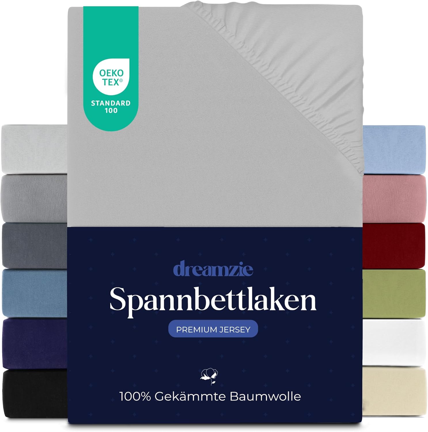 Dreamzie Premium чаршаф с пълнеж 120 x 200 см, чаршаф с пълнеж за дебели матраци до 22 см, чаршаф 100% джърси памук, 150 г/м², сертифициран по Oeko-Tex - сив