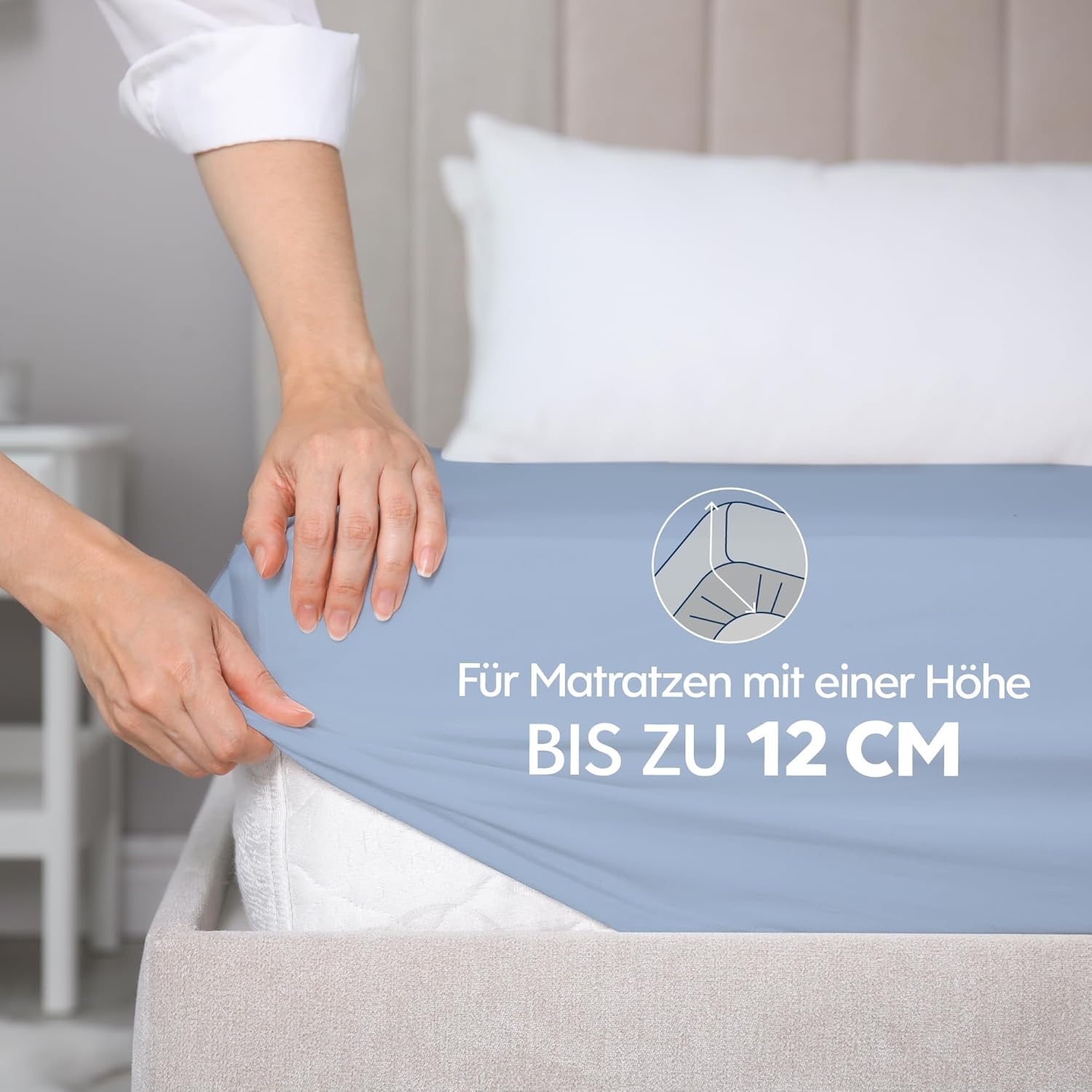 • Перфектно прилягане за матраци с височина до 30 см: Нашият чаршаф с височина на основата 30 см е идеален за матраци с височина до 25 см и позволява лесно напасване и сигурно задържане през цялата нощ.