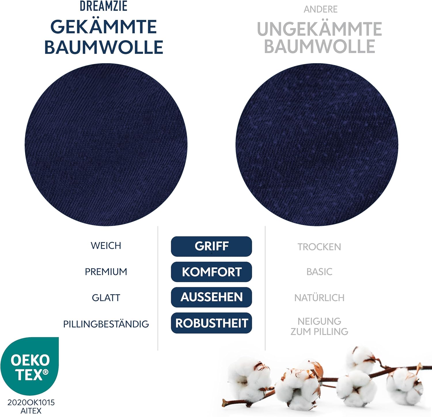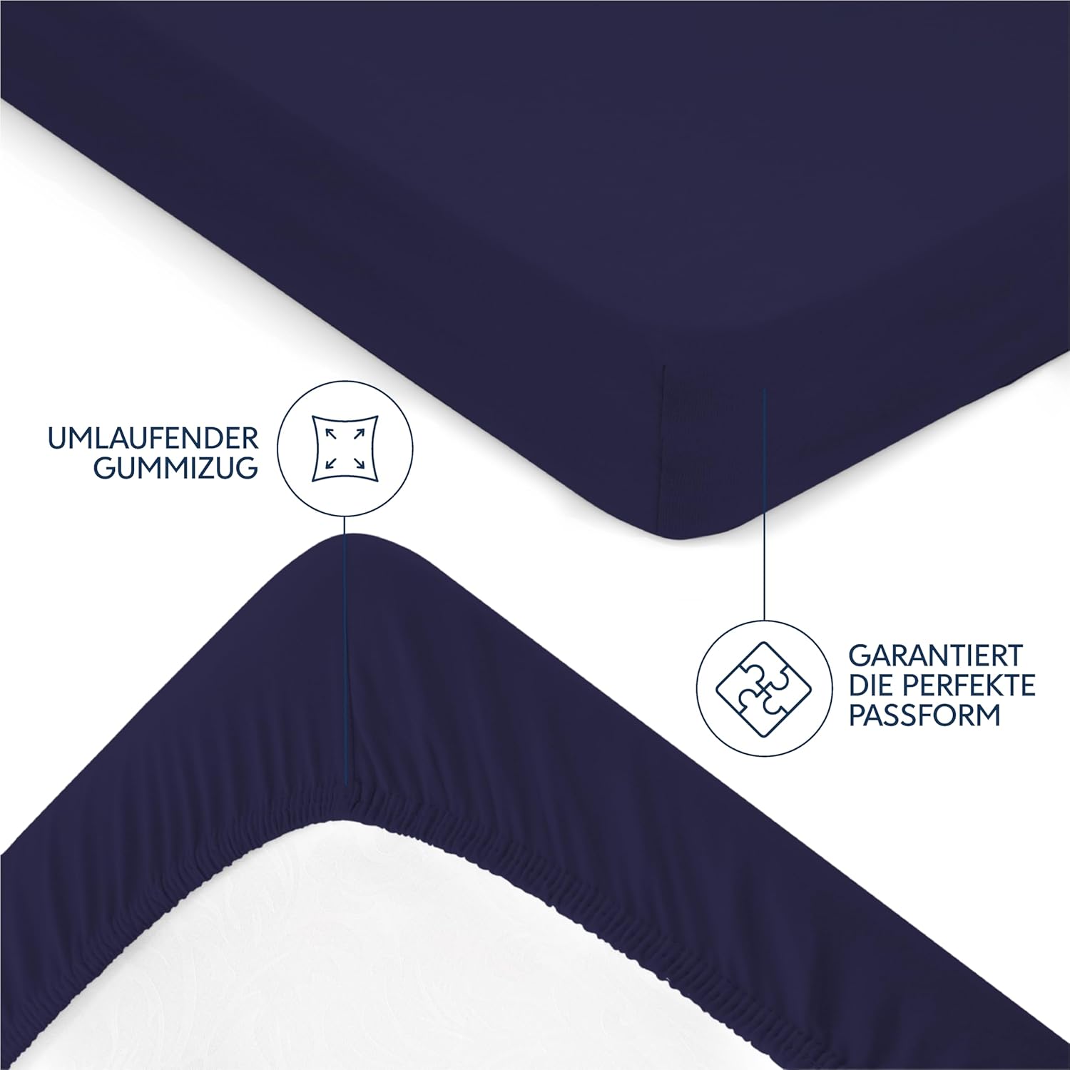 Dreamzie Premium чаршаф с пълнеж 80 x 160 см, чаршаф с пълнеж за дебели матраци до 12 см, чаршаф 100% джърси памук, 150 г/м², сертифициран по Oeko-Tex - тъмносин
