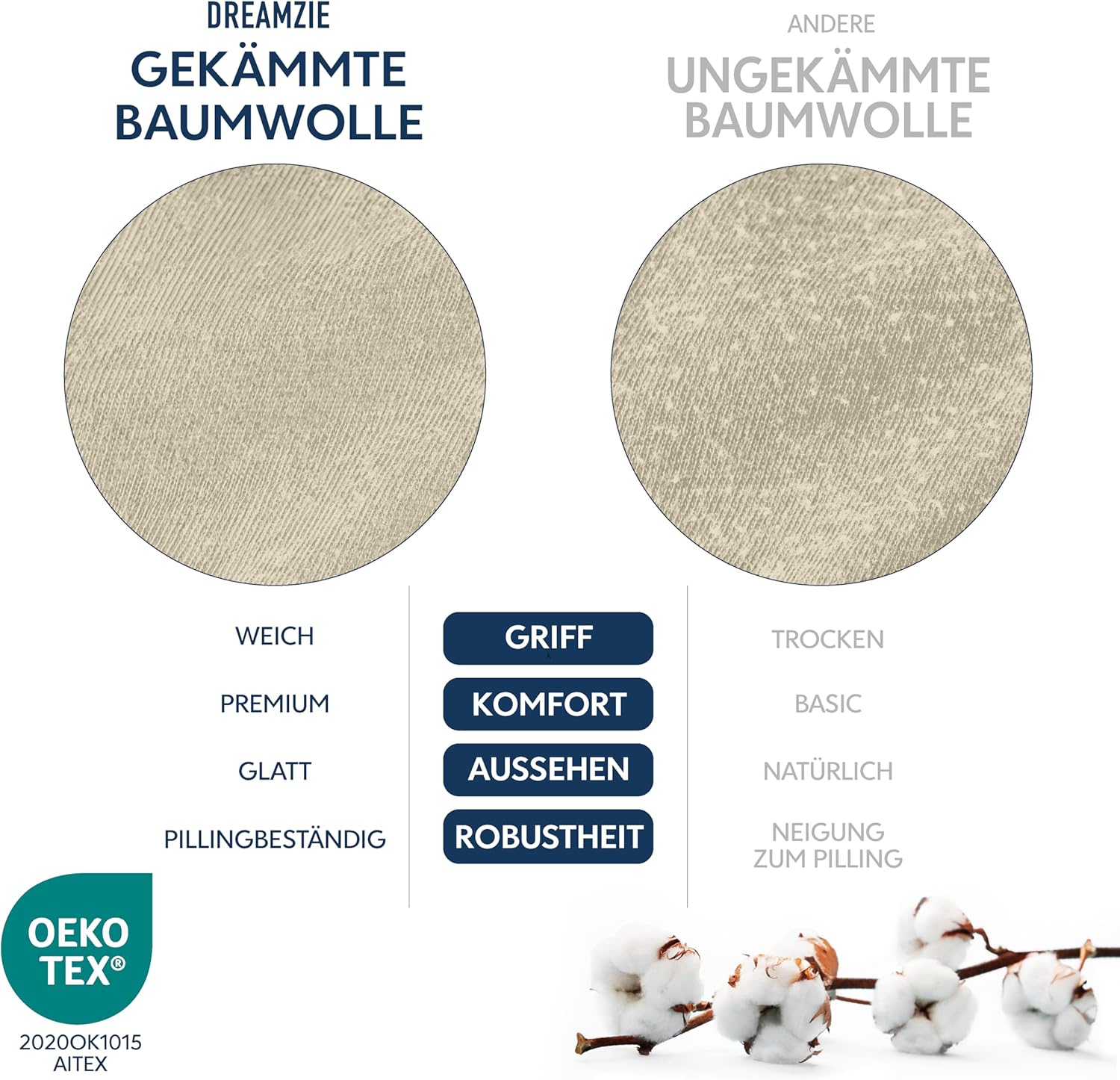 Dreamzie Premium чаршаф с пълнеж 80 x 200 см, чаршаф с пълнеж за дебели матраци до 12 см, чаршаф 100% джърси памук, 150 г/м², сертифициран по Oeko-Tex - бежов
