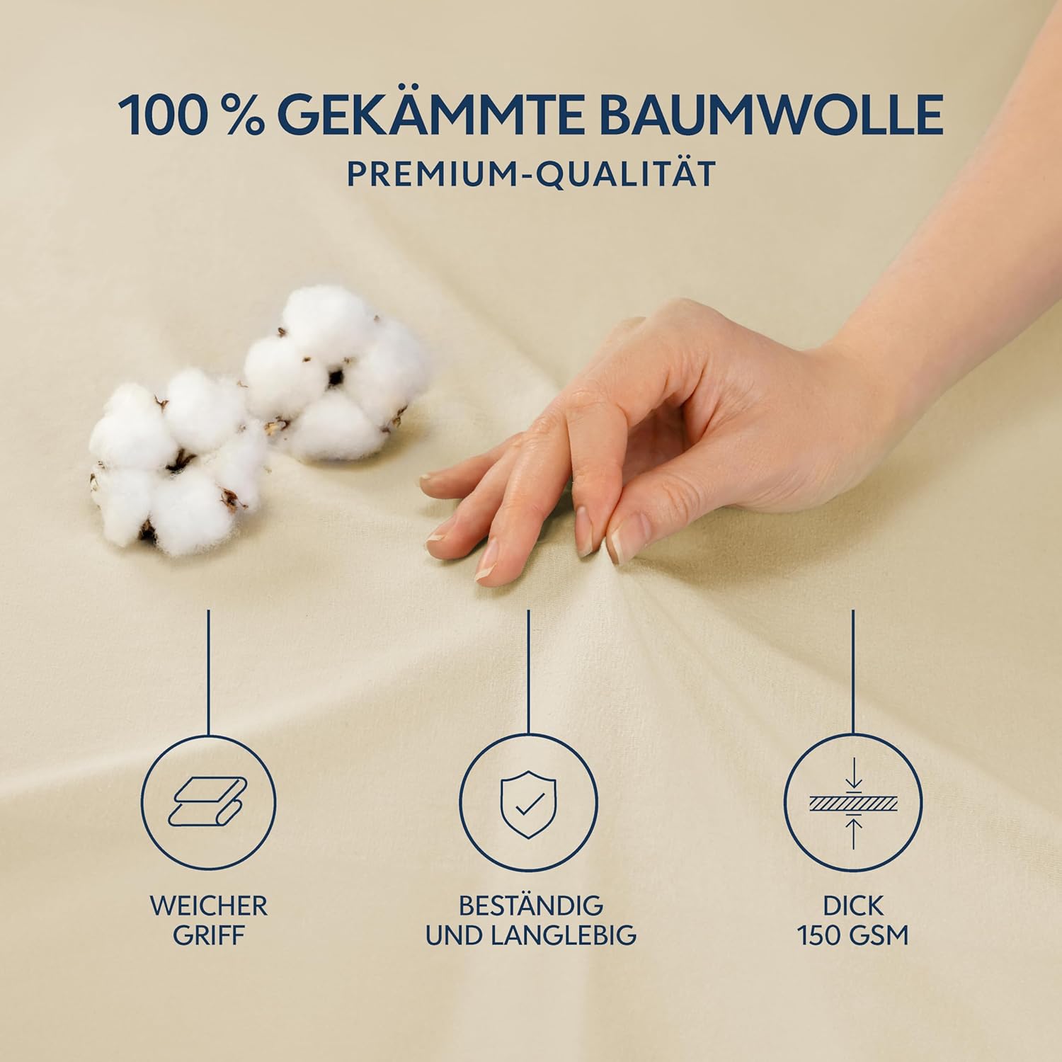 • Повишена издръжливост и първокласно качество: Нашият чаршаф с плътност 150 GSM е специално разработен за изключителна издръжливост. Благодарение на специалната обработка Sanforknit, спалното бельо е устойчиво на свиване и е с устойчиви размери за дълготрайно качество.