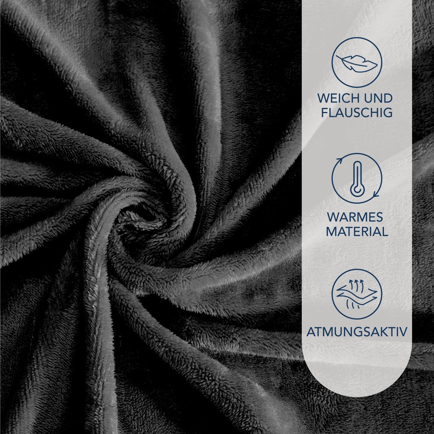 DREAMZIE Премиум хавлиен чаршаф с фина облегалка, 90 x 200-100 x 200 см, чаршаф с кашмирен ефект, чаршаф с фина облегалка от джърси полар, черен