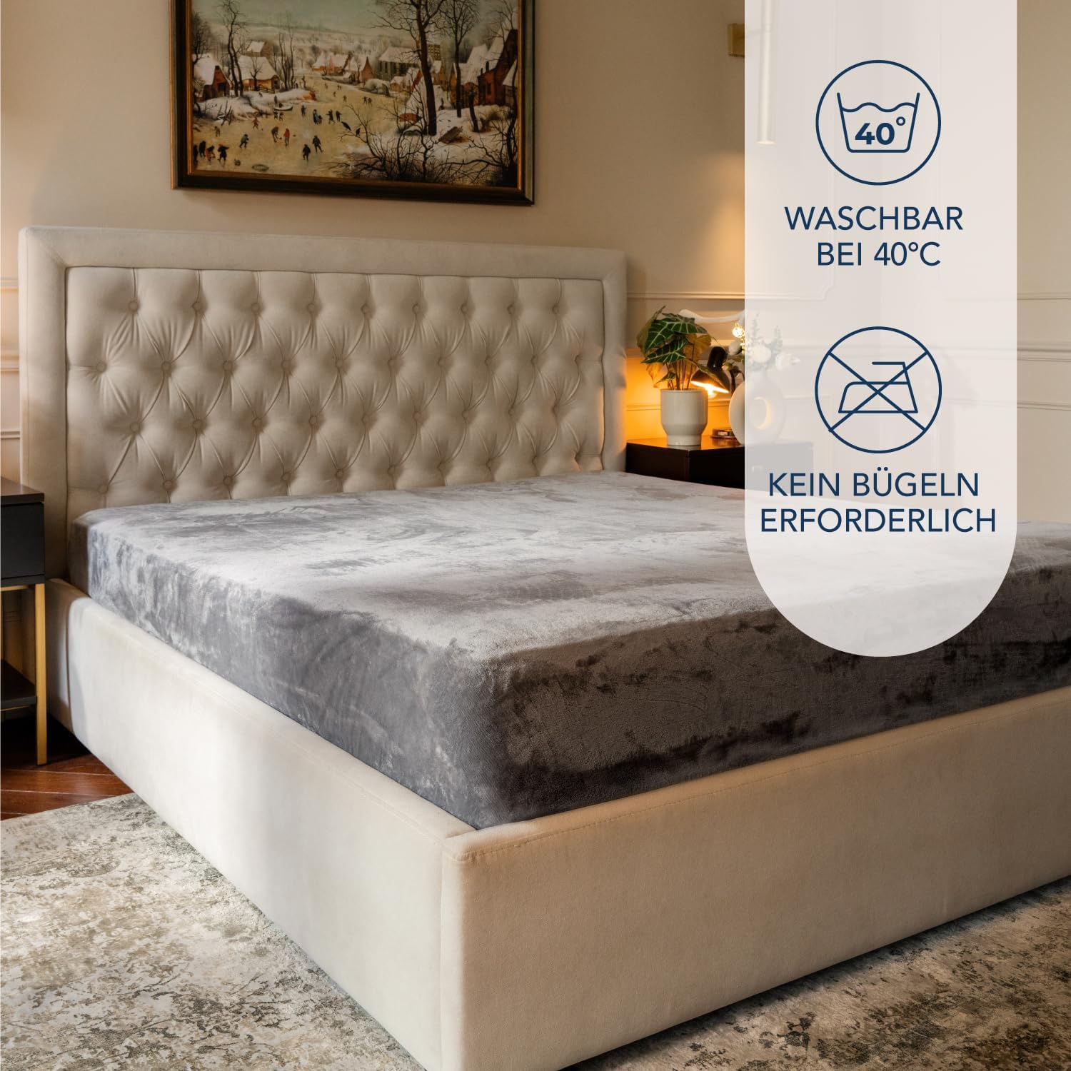 DREAMZIE Премиум хавлиен чаршаф с пълнеж, 140 x 200-160 x 200 см, чаршаф с кашмирен ефект, чаршаф с пълнеж от джърси флис, тъмносив
