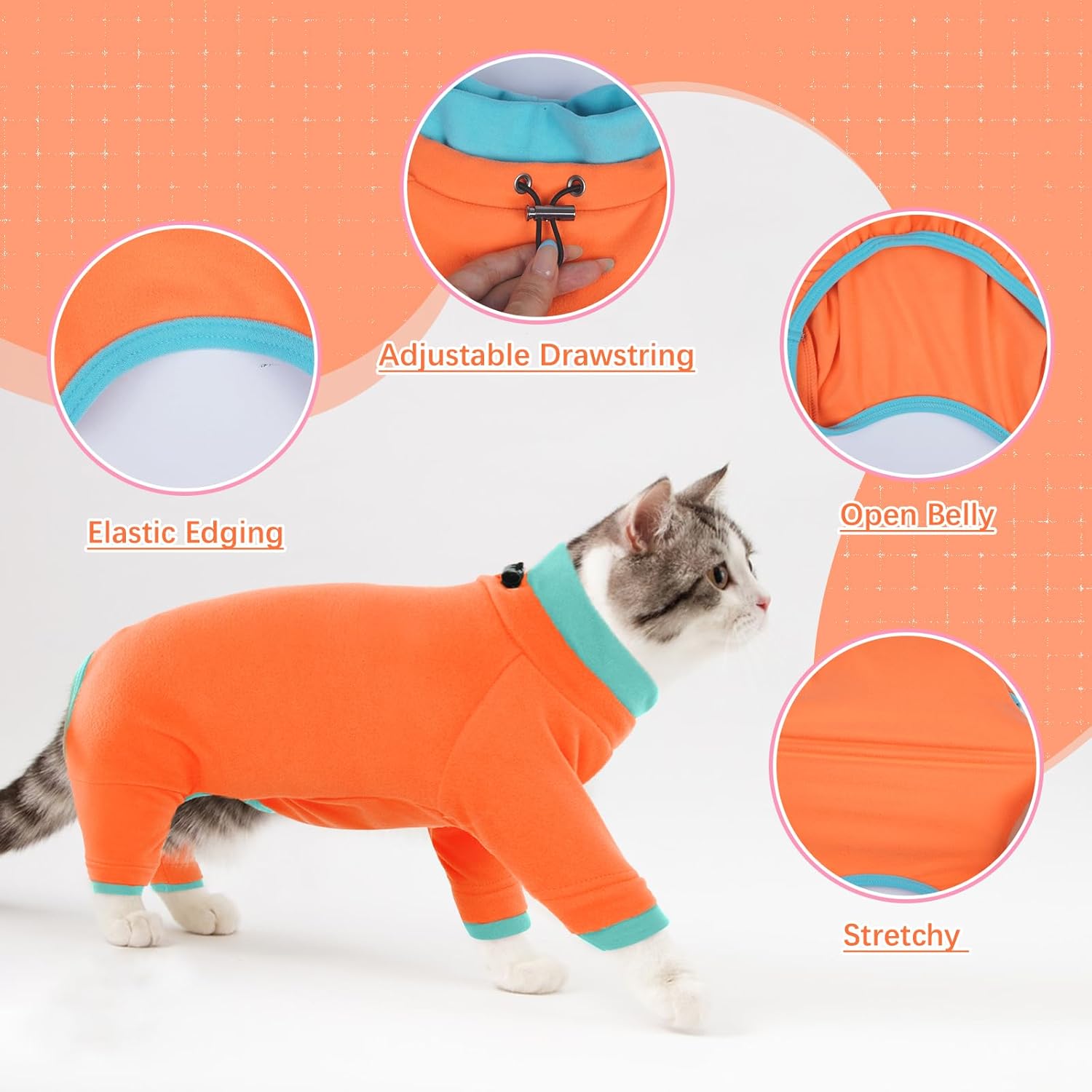 Меко: Костюмът за възстановяване на цялото тяло за котки е изработен от полар и затова е супер мек, топъл, лек, еластичен и удобен.