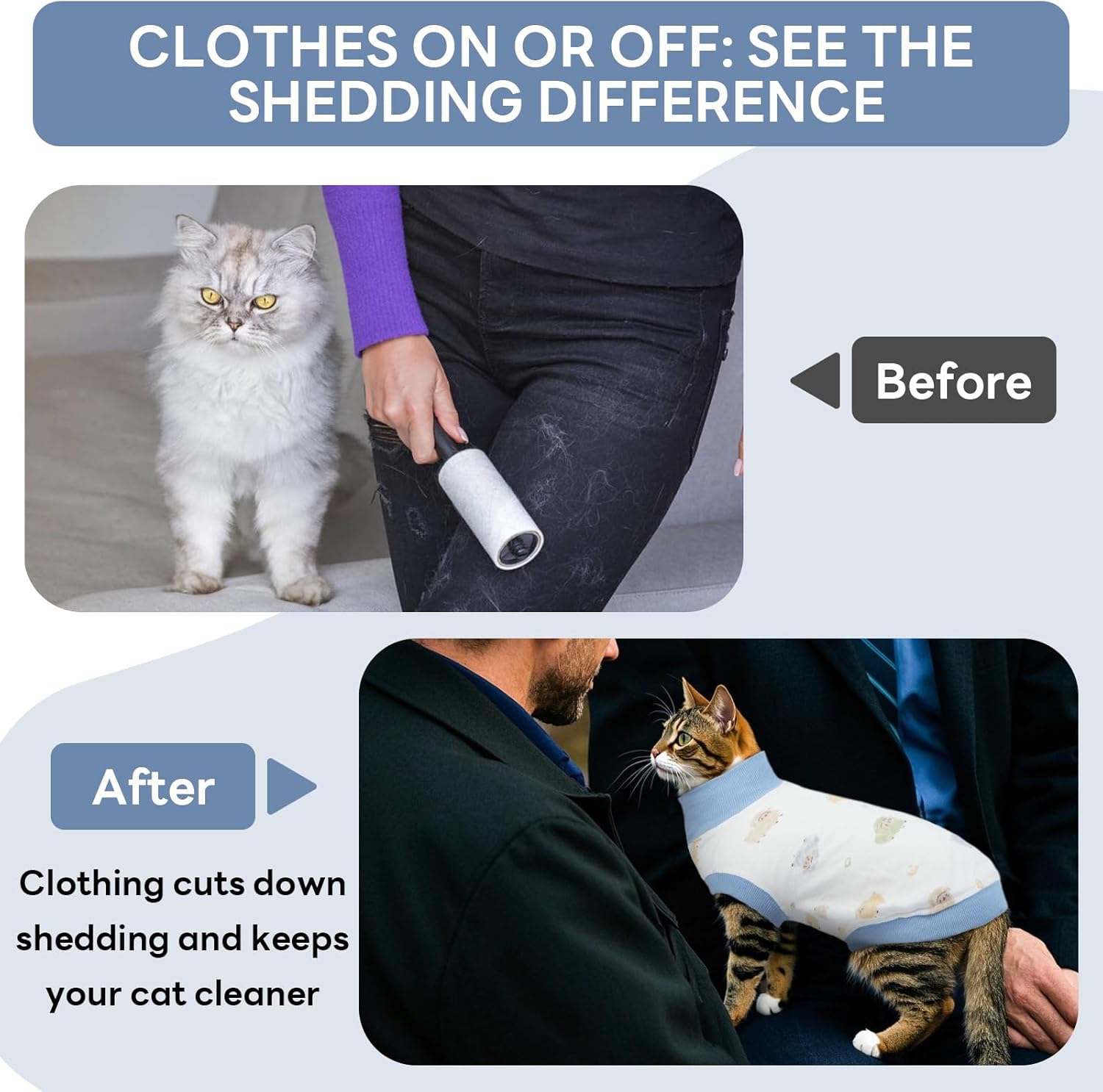 • Ежедневен комфорт при носене за контрол на козината и чисти апартаменти – спомага за намаляване на козината по мебелите, спалното бельо и дрехите. Идеален за домове с няколко котки или за страдащи от алергии, които искат да поддържат дома си по-чист и хигиеничен. Това решение за контрол на козината в котешките дрехи е важно допълнение към гардероба на вашата котка и улеснява справянето с разхлабената козина в домакинството.