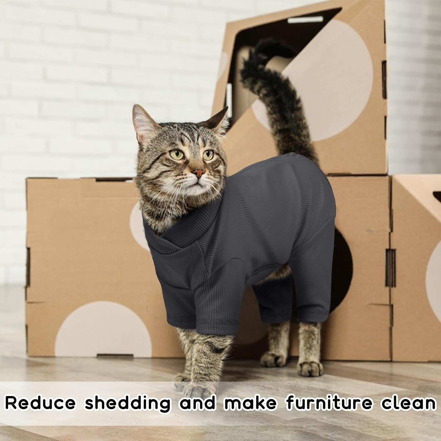 • Функция: дрешки за котки за всички сезони; помагат на котки (с алергии или кожни инфекции/прекомерно груминг) да избегнат близане или драскане; практичен котешки боди за близане на рани - алтернатива на фунията; котешко палто държи котките топли в студено време; дава на котките чувство за сигурност и комфорт, за да предотврати тревожността; намалява котешката козина по леглото или други мебели.