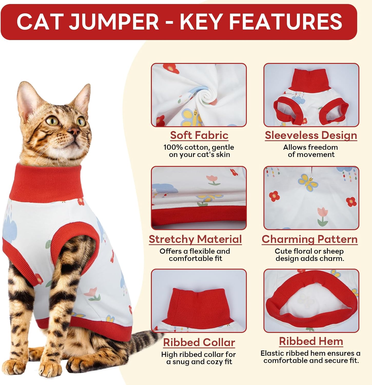 • Мека и дишаща памучна материя – за ежедневен комфорт – изработена от 100% мека памучна материя, тази котешка дреха е нежна към кожата на вашата котка и осигурява дишащо и леко усещане за комфорт през целия ден. Идеална за мързелуване у дома или за активни игри. Перфектно облекло за котки, което дава приоритет както на комфорта, така и на стила.