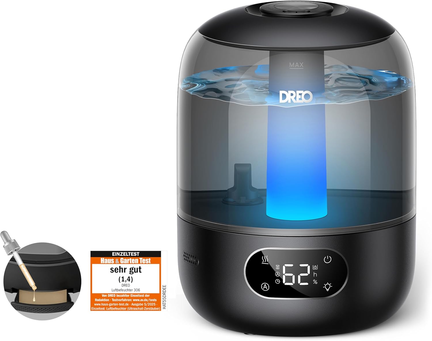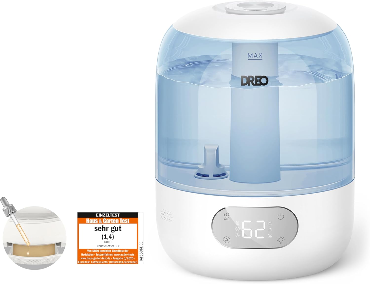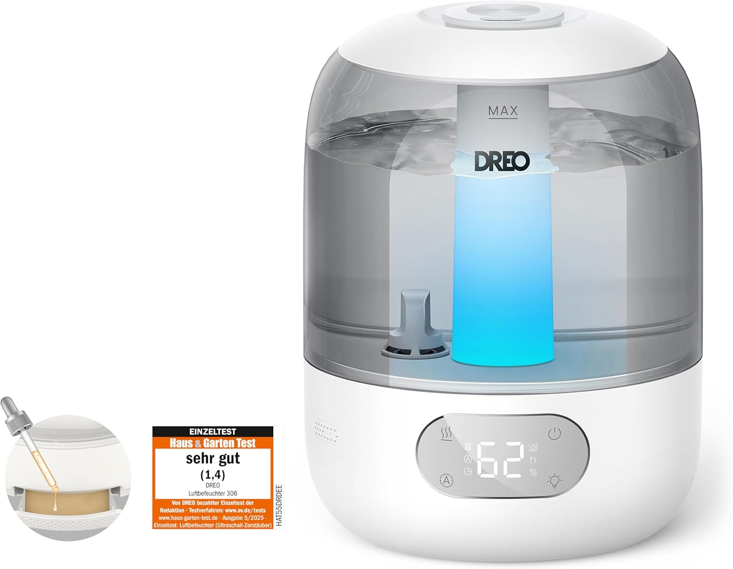 Dreo овлажнител за спалня, овлажнител с хладна мъгла за дома и голяма стая, тих овлажнител за бебе, нощна лампа, основен дифузер, бърз ултразвуков овлажнител