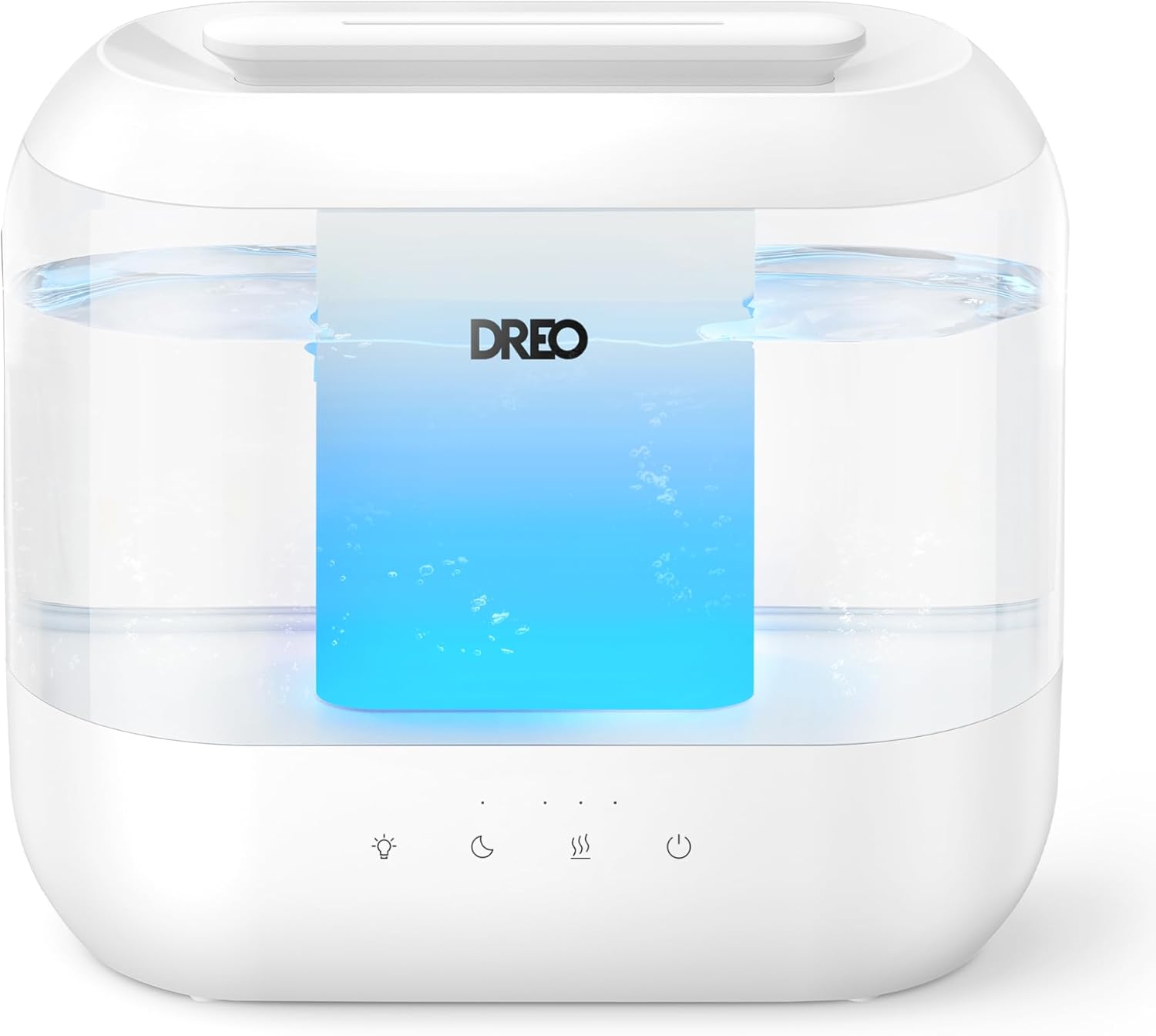 Dreo овлажнител за спалня, пълнене отгоре 4л, голям овлажнител с хладна мъгла, дифузер за масло и нощна светлина, 32 часа време на работа, тих ултразвуков овлажнител за бебешка стая и растения