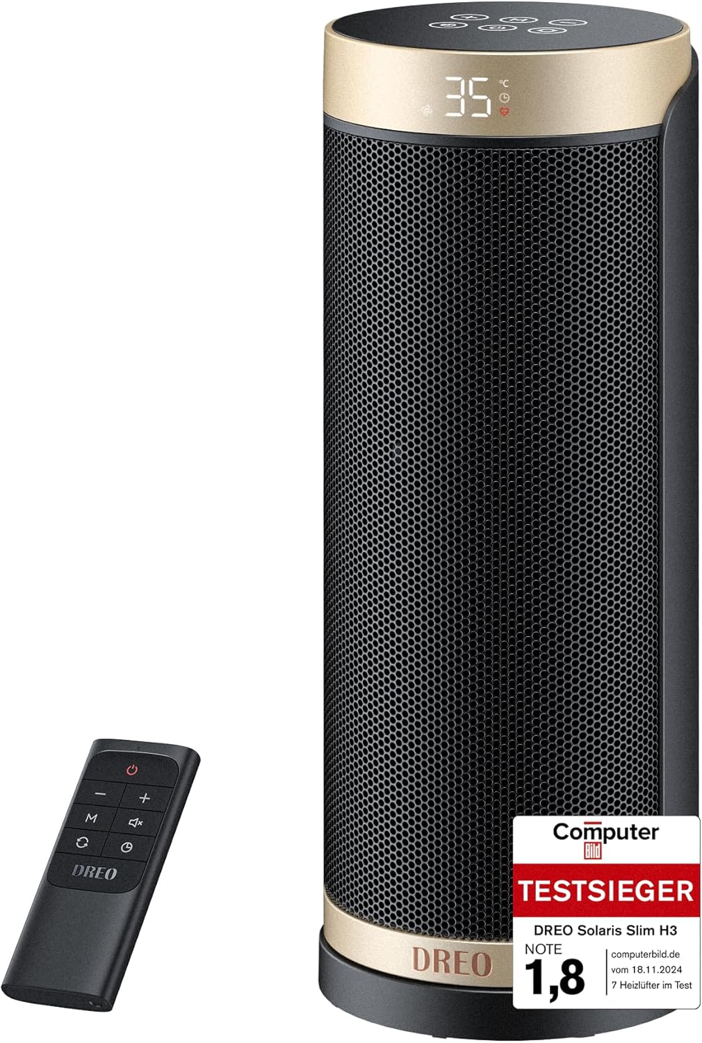 Dreo Solaris Slim H3 енергоспестяващ, PTC керамичен вентилаторен нагревател, тих, 70° осцилиращ електрически нагревател с дистанционно управление, 12-часов таймер, 3 режима, 3 скорости, защита от прегряване и накланяне.