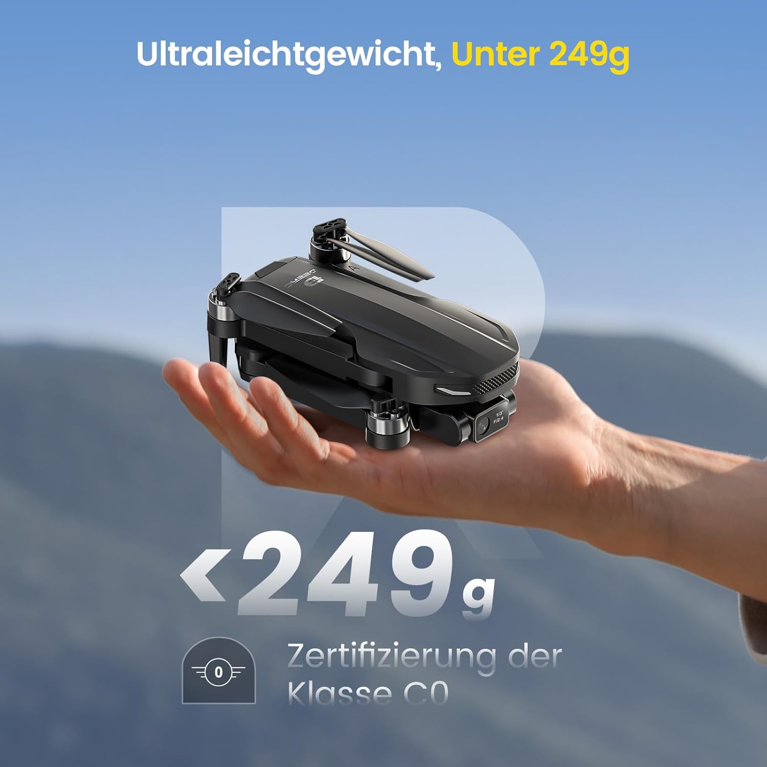 • Сертифициран по C0 и под 249 г: С тегло под 249 г, дронът отговаря на изискванията на ЕС клас C0. Моля, обърнете внимание: поради вградената камера е необходима регистрация и евентуално застраховка.