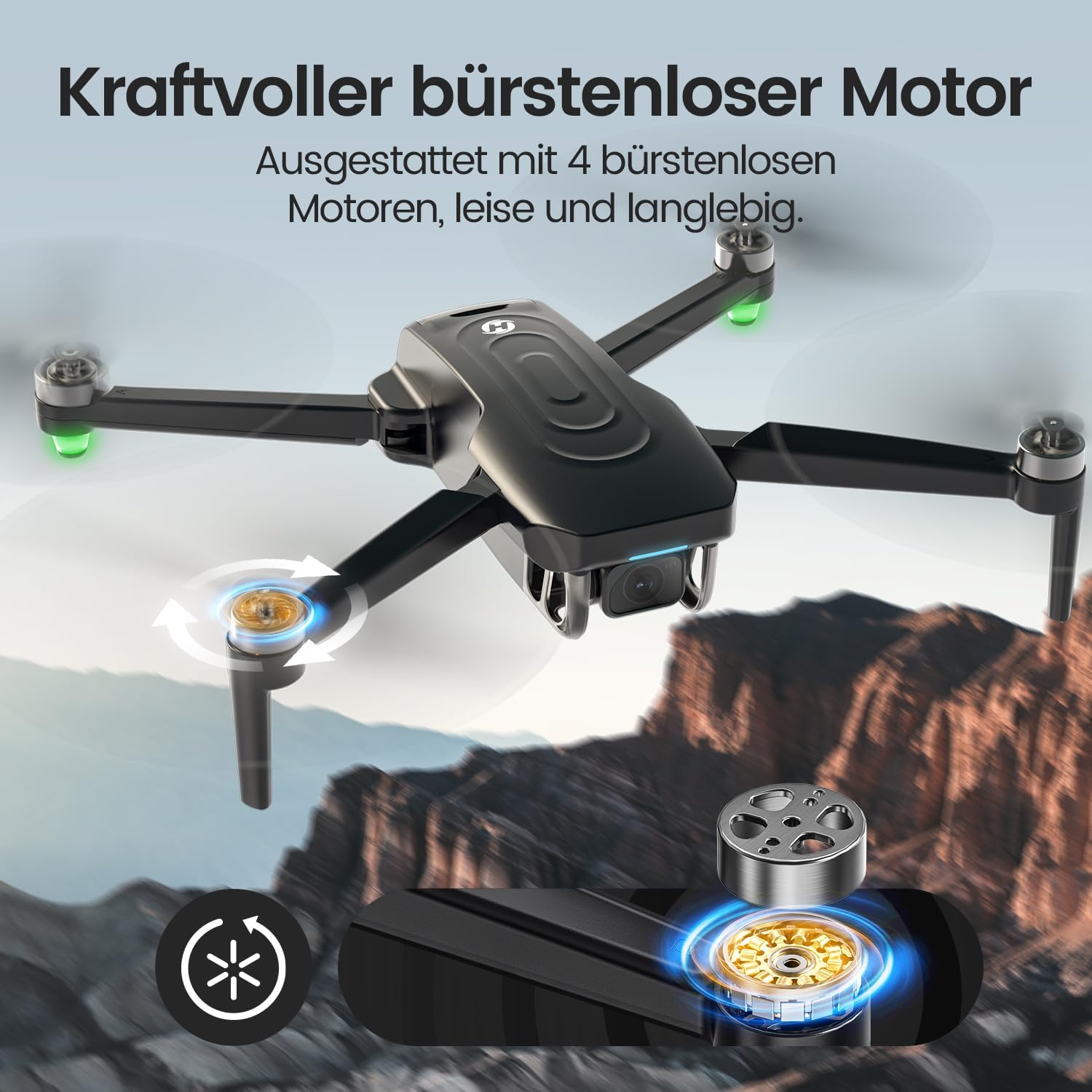 • Живот на батерията: с подобрените батерии, всяка батерия достига време на полет до 30 минути - с две включени батерии можете да се насладите на общо до 60 минути забавление от полет. В допълнение, безчетковите двигатели осигуряват още по-голяма мощност и ефективност.