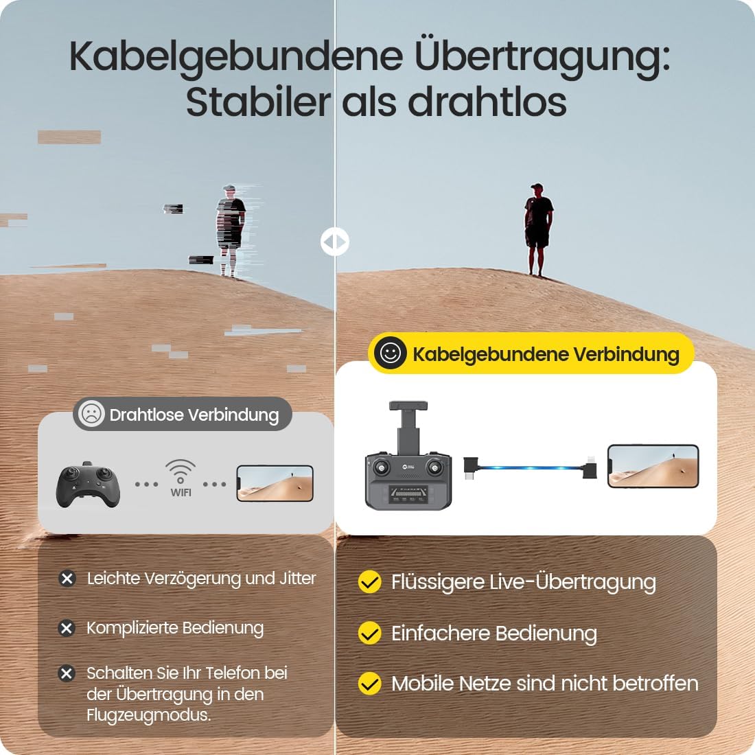 • Предаване на изображение на дълги разстояния – Позволява предаване на изображение на разстояние от 3 км (без ръчно свързване към WiFi чрез USB). Благодарение на стабилното и ясно предаване на изображението, можете да виждате по-далеч.