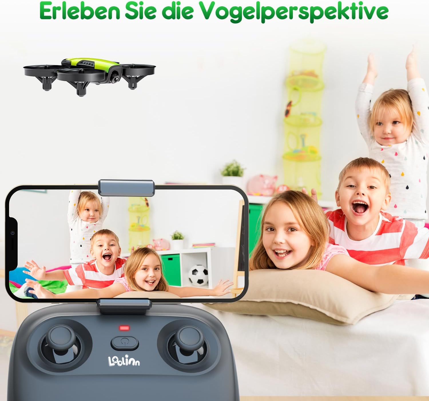 Дрон Loolinn с камера като подарък за деца - мини дрон с дистанционно управление, камера за гледане от първо лице (FPV) с видео и снимки / 21 минути време на полет (включени три батерии)