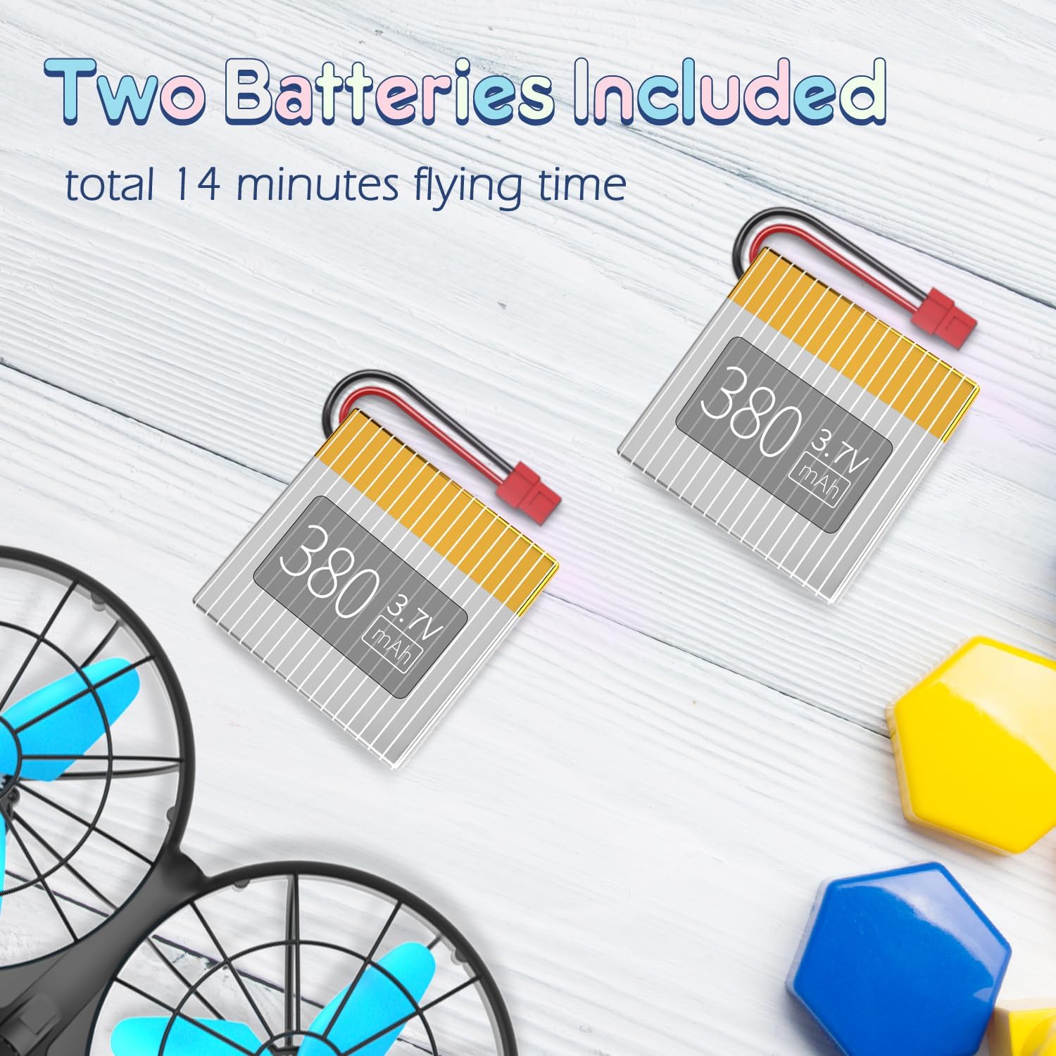 • 14 минути време за полет: Този детски дрон се предлага с две батерии. Общото време за полет може да бъде до 14 минути.
