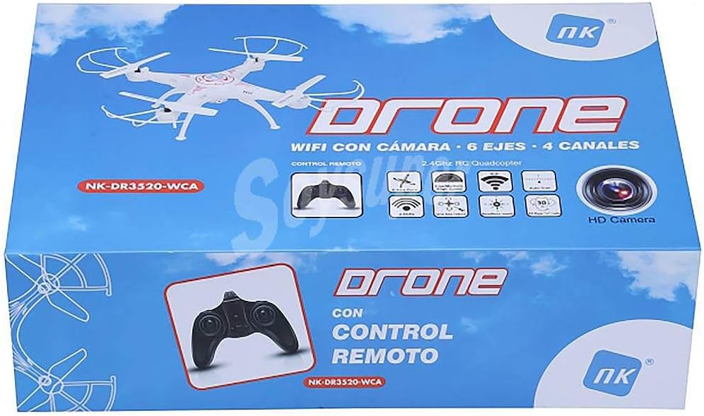Характеристики: Марка: NK Управление: Радиочестота, Вградена камера: Да Време за работа: 7-8 минути, 0.3 мегапикселова WiFi камера (640 x 480P), три избираеми скорости. Режим на заспиване и връщане в базата. Включва 2.4GHz дистанционно управление.