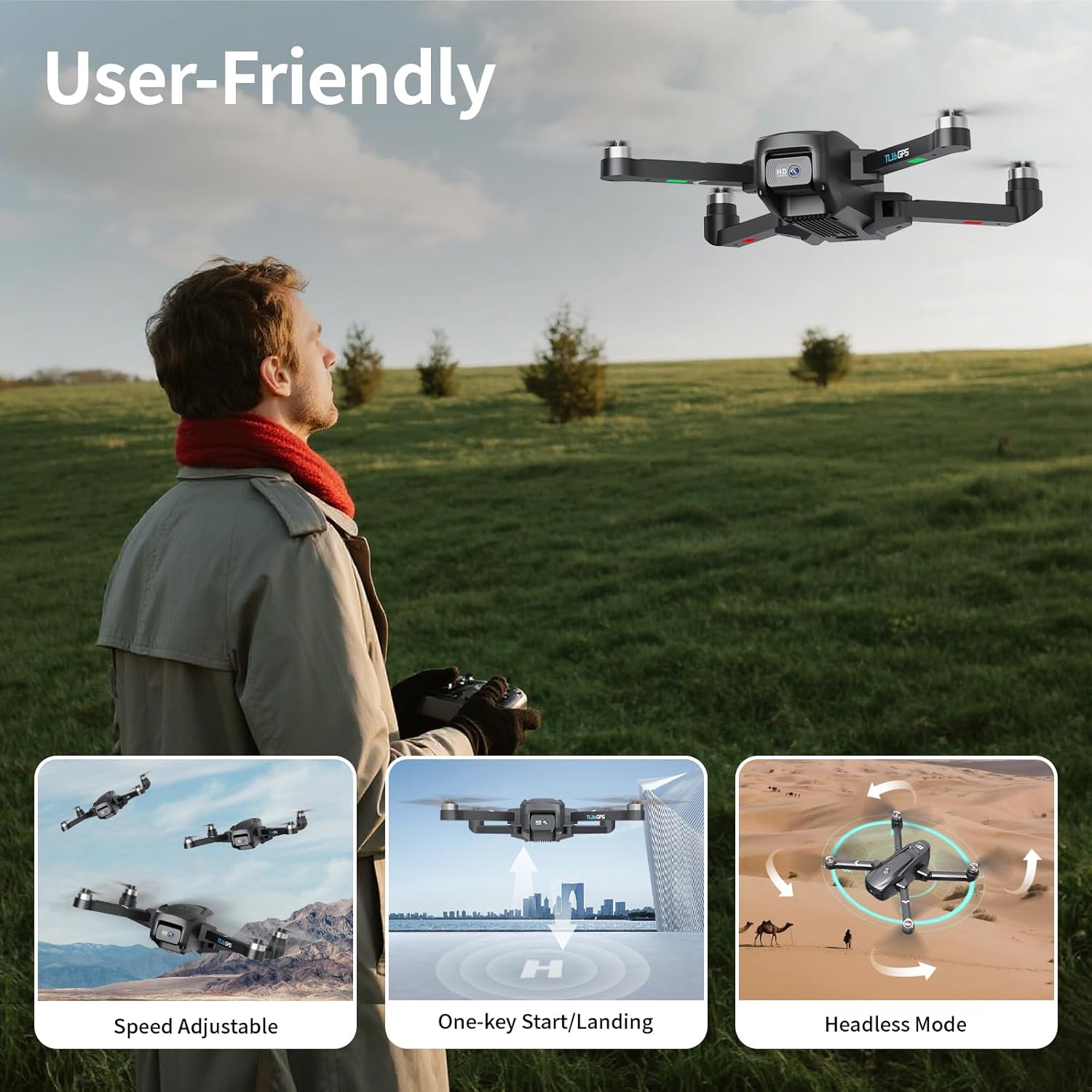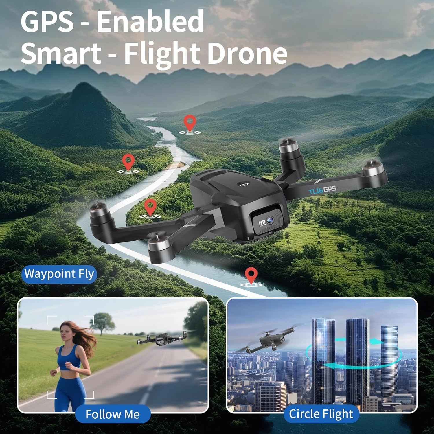 Дрон с 4K камера, GPS дронове за възрастни, автоматично връщане, 5G WiFi предаване, следвайте ме, безчетков мотор, сгъваем квадрокоптер за начинаещи, TL16GPS