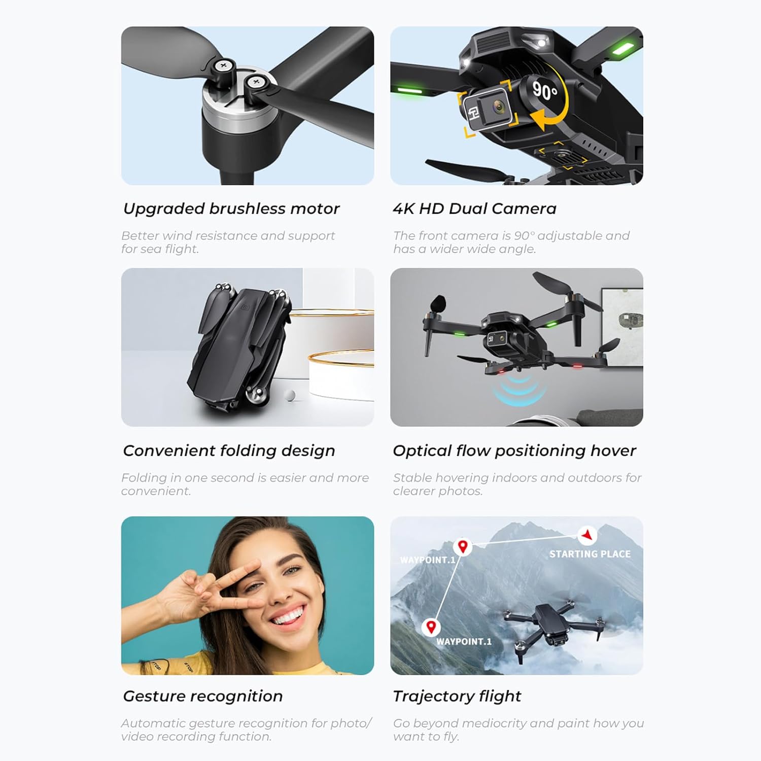 Със сгъваемия си дизайн и безчетков мотор, дронът е лек, преносим и предлага стабилни полетни характеристики. Подходящ е както за начинаещи, така и за опитни пилоти.