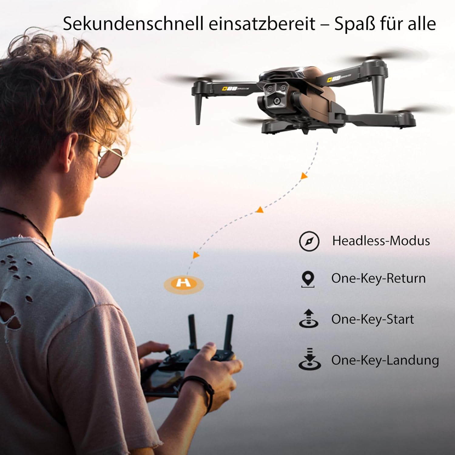 In headless mode, the drone no longer orientates itself to its front, but always moves relative to the position of the pilot. This means that forward, backward and sideways can be controlled intuitively without confusion about the direction of flight. This feature makes flying easier for beginners and ensures a stress-free, safe flying experience.