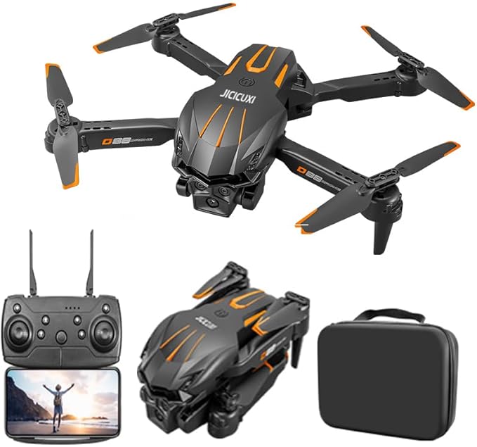The compact toy drone measures approx. 18.5 cm x 15.8 cm x 5 cm (length x width x height) when unfolded. When folded, it is only about 13 cm x 8 cm x 5 cm, which makes it particularly handy and easy to transport. Weighing only 103 grams, it is ideal for children and beginners as it is easy to handle and fly.