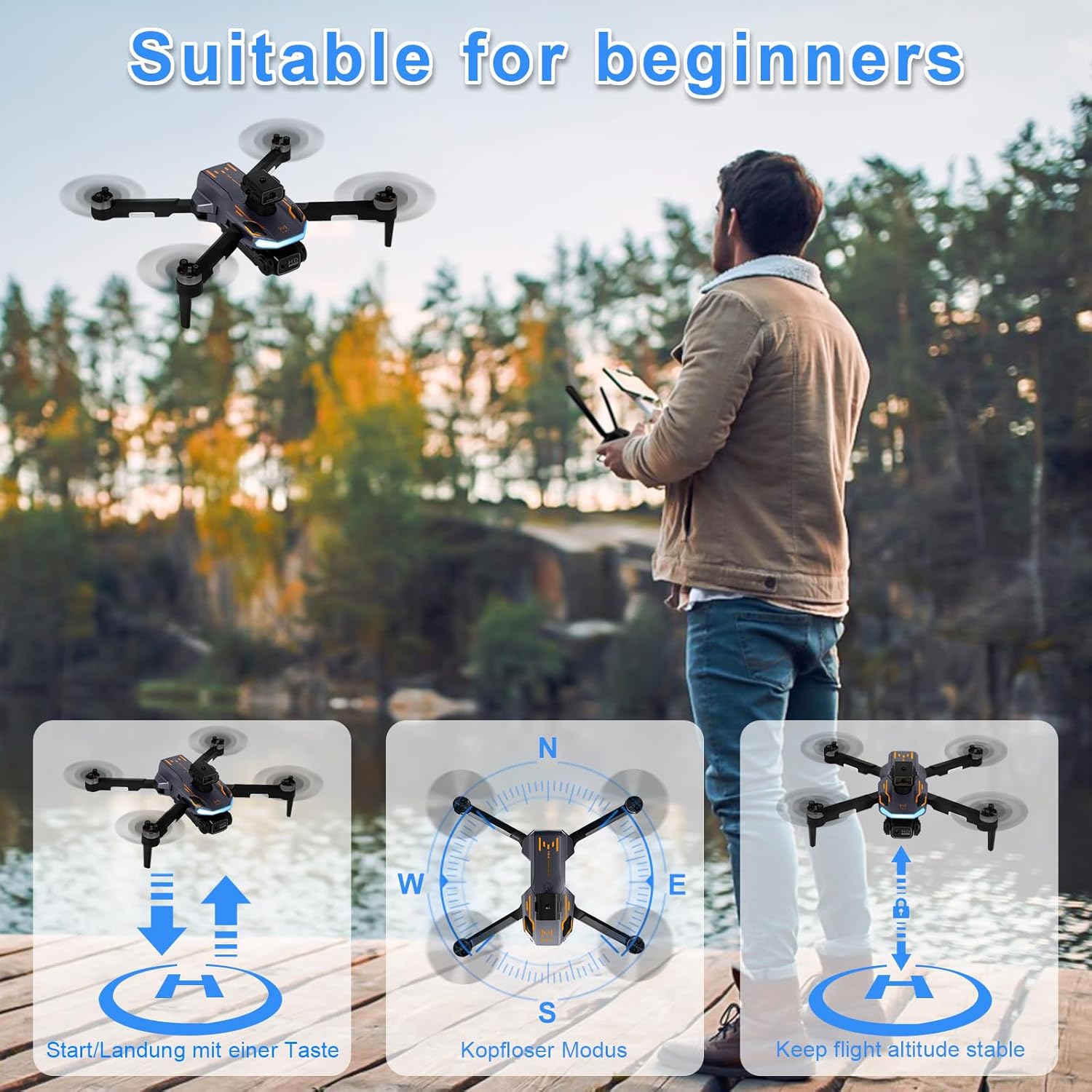 Drone with 1080P HD Camera, Remote Control FPV Drones, Mini Drone, WiFi Live Video for Beginners and Children