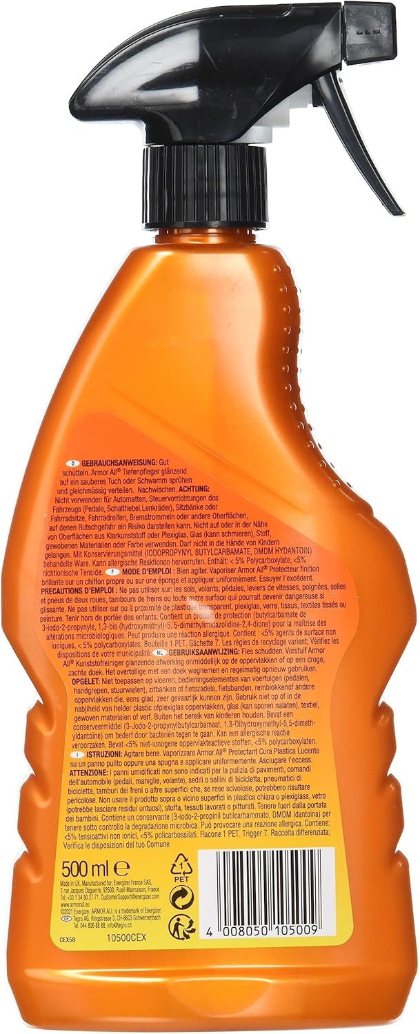 • Какво получавате - 500 мл гланцов почистващ препарат за интериор на автомобил за пластмаса, гума и винил