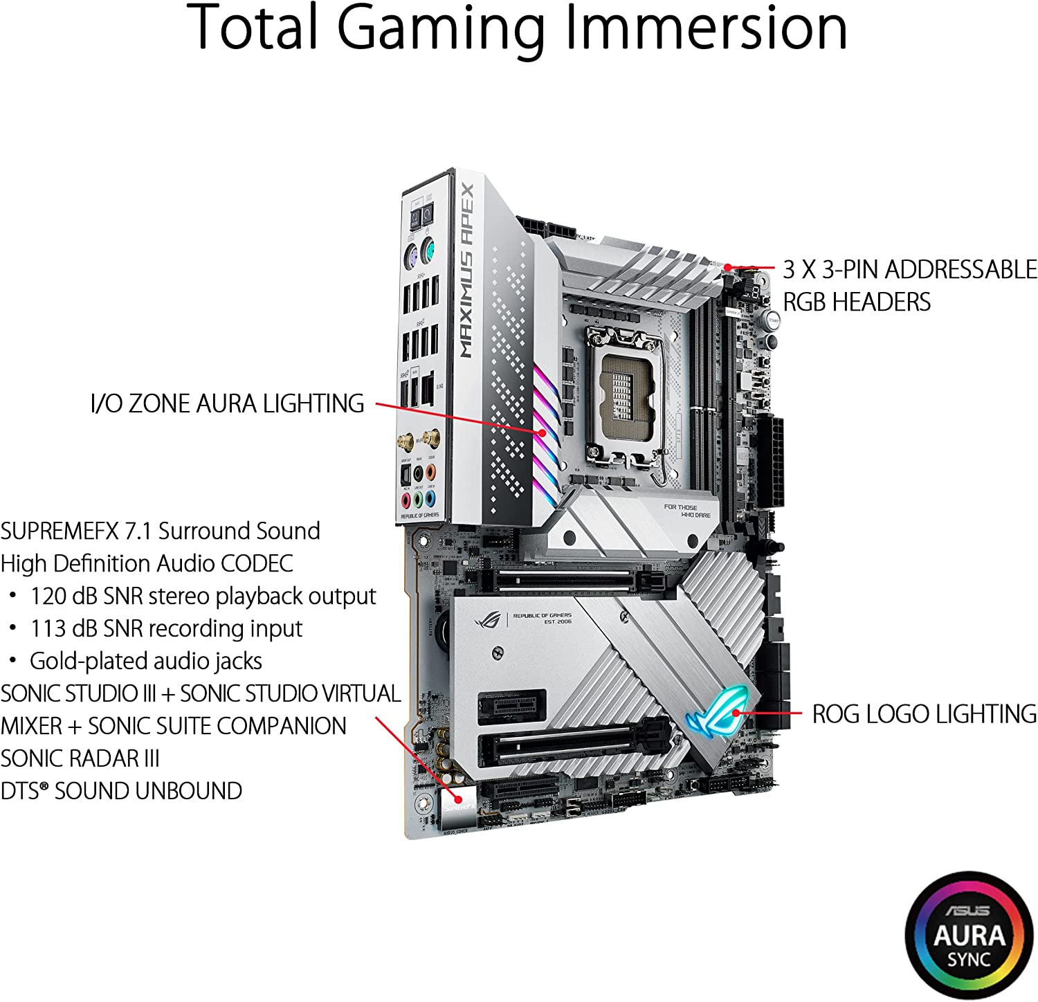 Дънна платка ASUS ROG Maximus Z790 Apex Socket LGA1700, ATX, DDR5, PCIe 5.0, 2.5 Gbps Ethernet WiFi 6E, Aura Sync