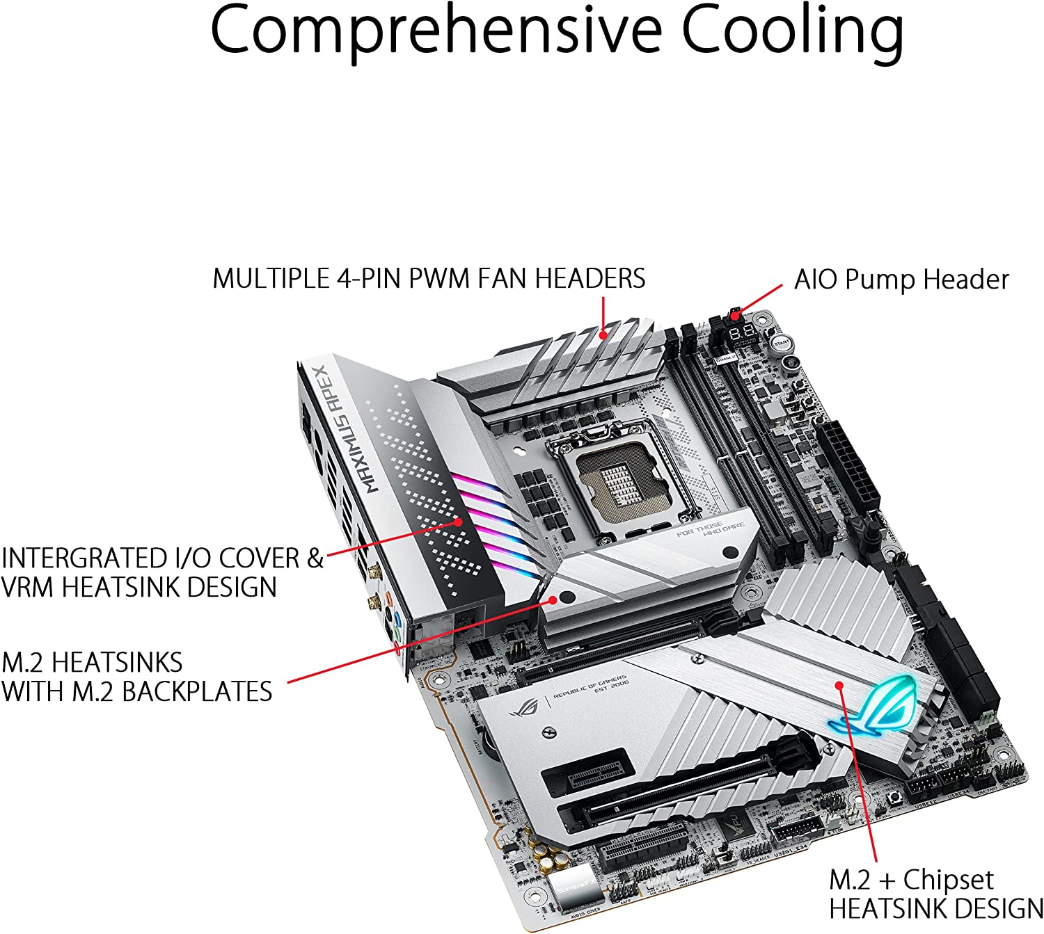 • Оптимизирани VRM Thermals: Солиден радиатор с интегриран I/O капак, високопроводими термични подложки и свързан към топлинна тръба