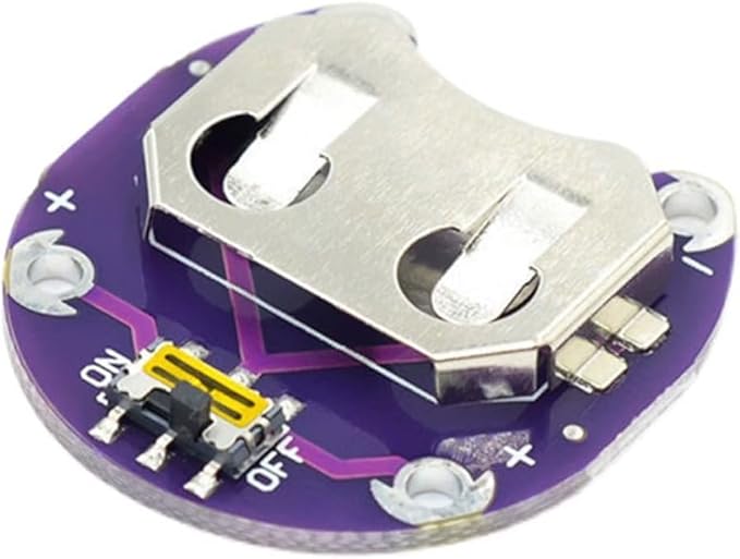 Този държач за батерии тип „копче“ LilyPad разполага с малък плъзгащ се превключвател, свързан към захранването, така че можете да изключите проекта и да пестите батерията. Този плъзгащ се превключвател е идентичен с плъзгащия се превключвател на LilyPad, така че няма просто случайно да се изключи или включи. Точно както оригиналния държач за батерии тип „копче“, обикновената пластина може да побере 20 мм батерия тип „копче“ (напр. CR2032) и ви осигурява четири точки за свързване (два положителни и два отрицателни), които можете да зашиете към вашия проект. Разполага с 4 точки за свързване (2 +, 2 -) - със заваряване или проводима нишка. Вградени превключватели. Размер: диаметър 1,1 инча x височина 0,2 инча. Тегло: 3,0 г. Цвят: лилав. За преносими устройства, компютри на базата на текстил, роботи и проекти с 3D принтери.