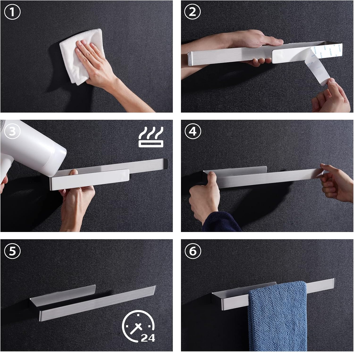 • Висококачествени материали: изящният държач за кърпи за баня е изработен от висококачествена неръждаема стомана 304, която е водоустойчива, устойчива на ръжда и надраскване, без остри ръбове и без драскотини.