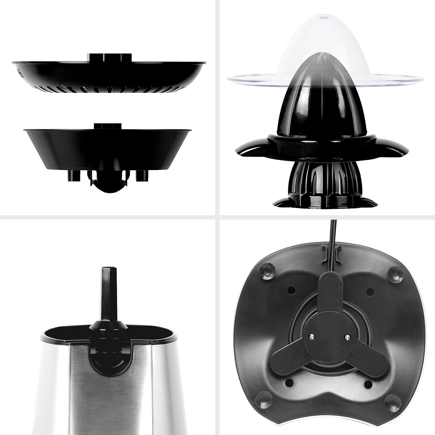 Duronic JE6 SR Електрическа сокоизстисквачка 100 W, Сокоизстисквачка за лимони, Сокоизстисквачка за цитруси, 2 конуса, Сокоизстисквачка за портокали, Високо извличане на сок, Преса за плодове от неръждаема стомана с цедка, Сокоизстисквачка за цитруси, Сокоизстисквачка за портокал