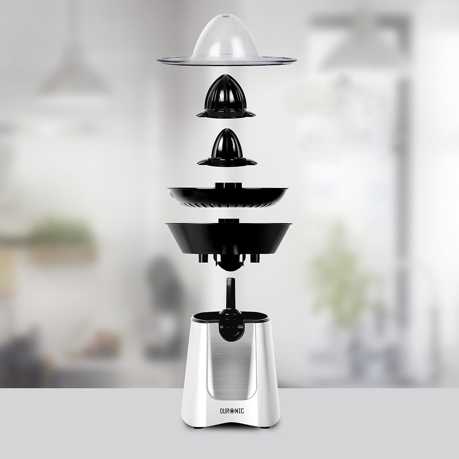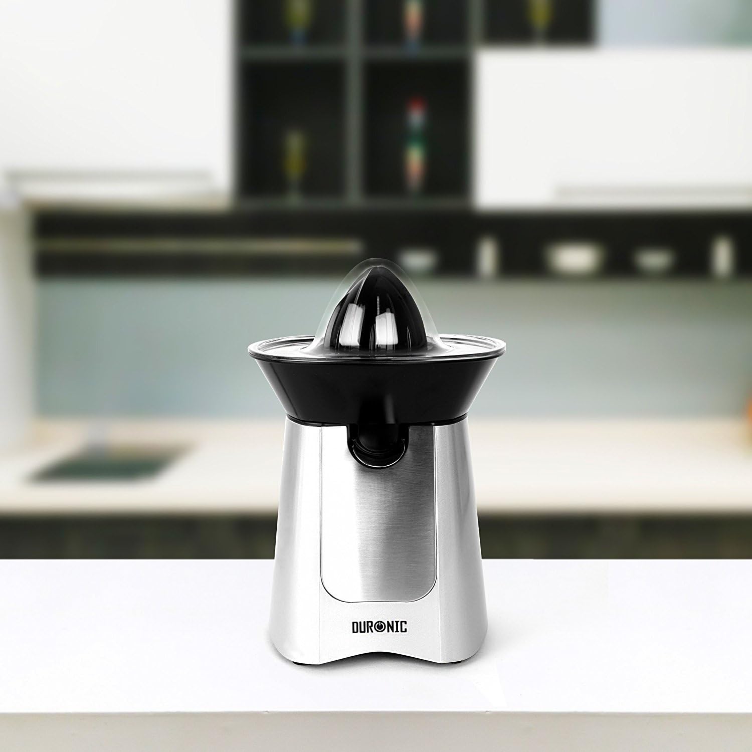 • РАЗШИРЕНА УНИВЕРСАЛНОСТ С ОПЦИИ С ДВОЙНИ КОНУСИ Електрическата сокоизстисквачка за лимони Duronic JE605 предлага максимална гъвкавост с два размера конуса и функция за двойно въртене. По-големите конуси на цитрусовата сокоизстисквачка са идеални за портокали и грейпфрути, докато по-малките конуси са идеални за лимони и лаймове. Двойното въртене на пресата за плодове от неръждаема стомана осигурява цялостно извличане на сок, намалява отпадъците и увеличава максимално ефективността.
