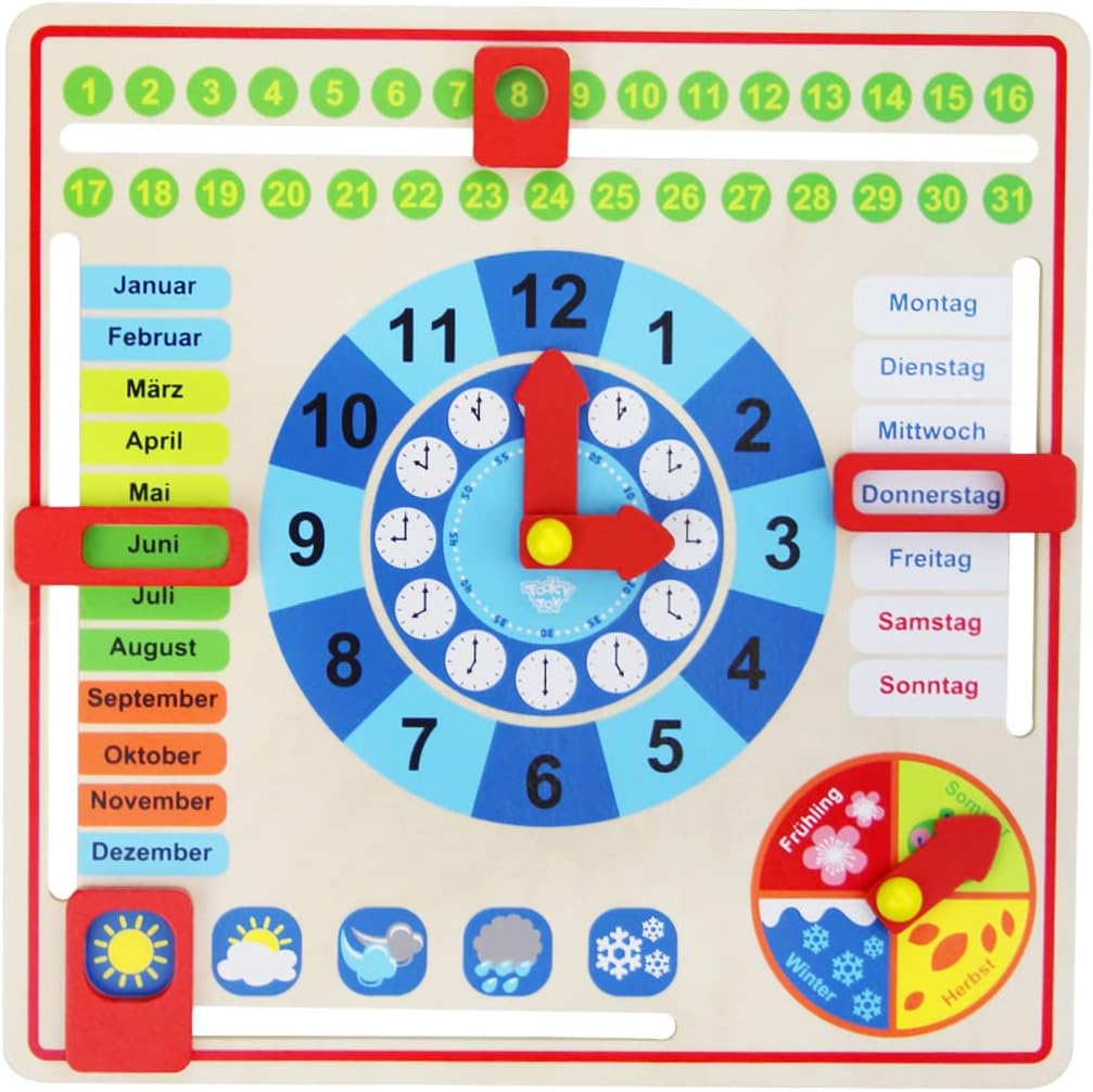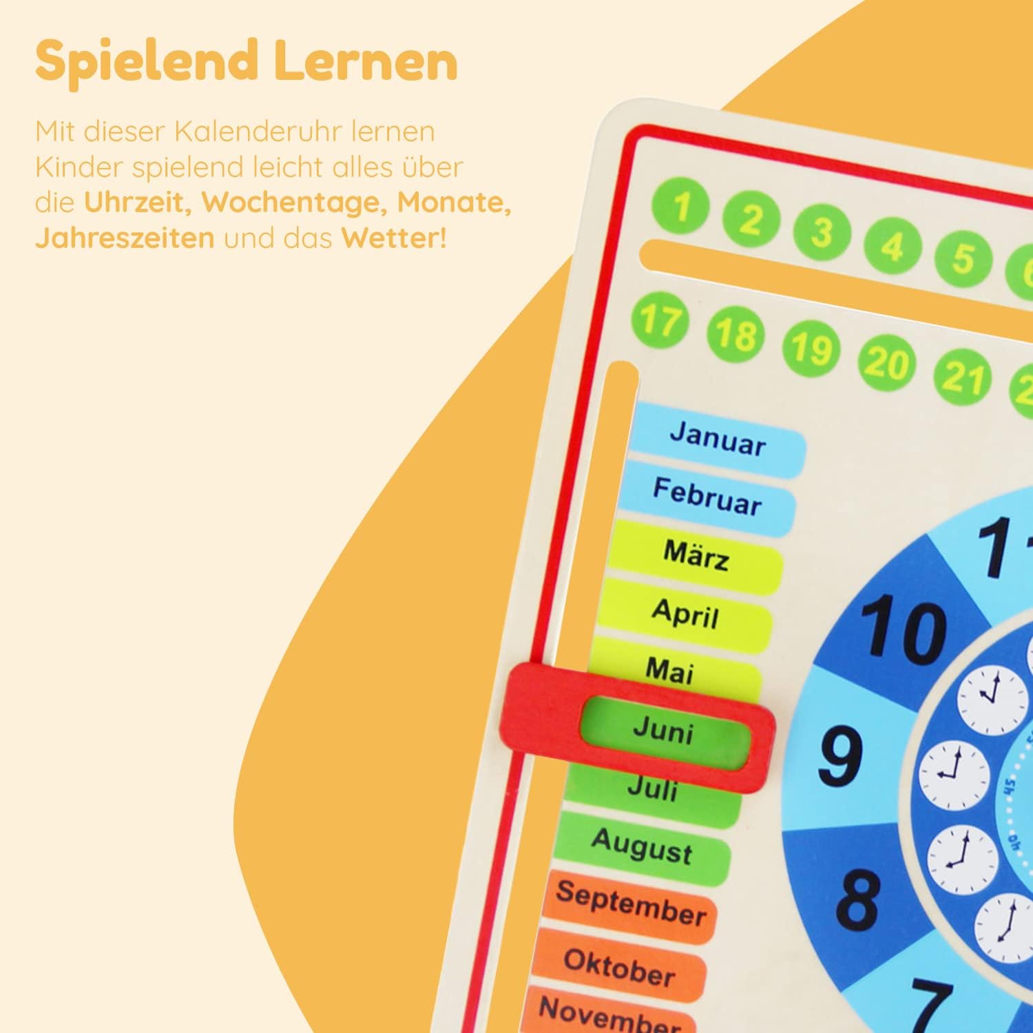 • Учене чрез игра: С този календарен часовник детето ви лесно ще научи всичко за времето, дните от седмицата, месеците, сезоните и времето.