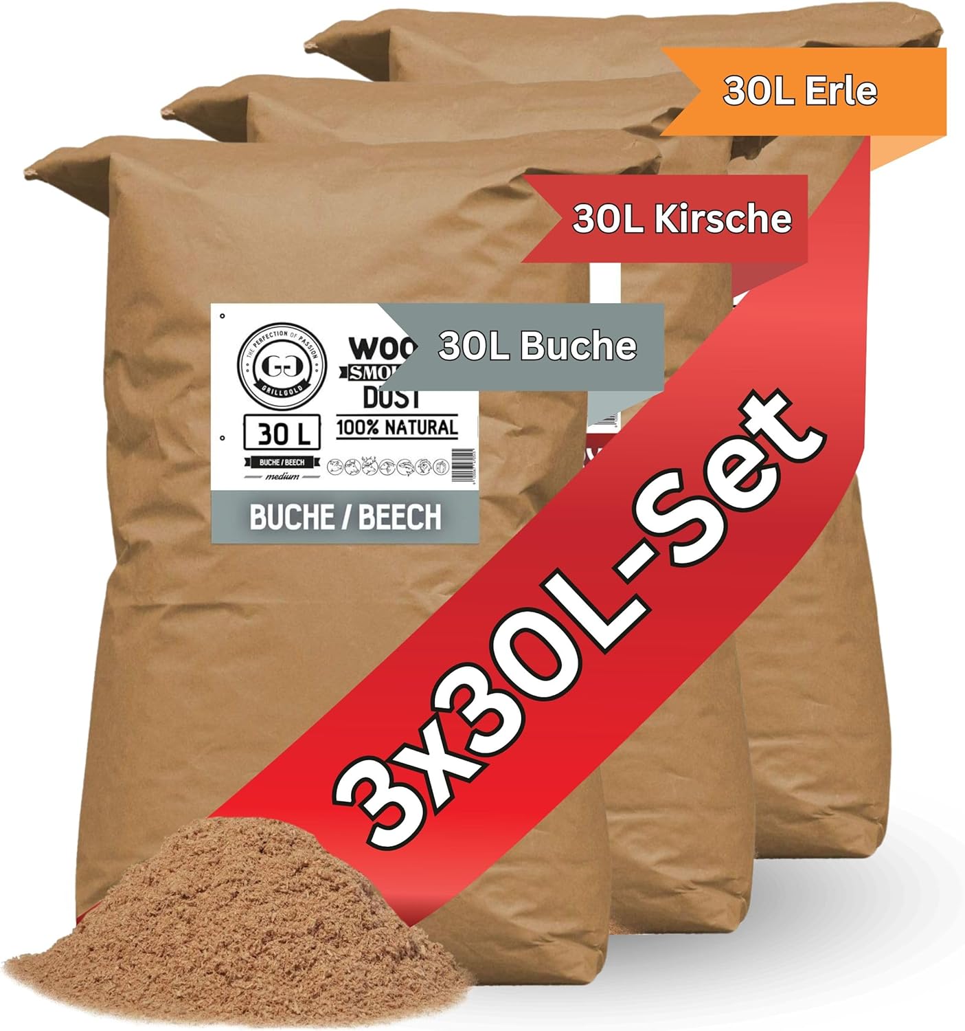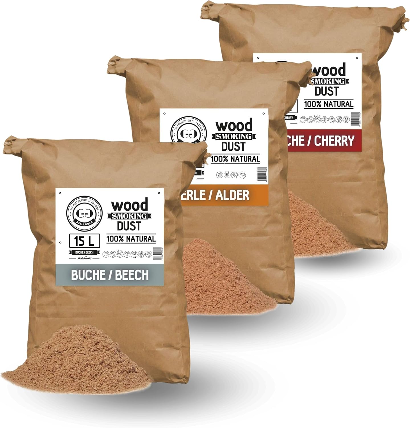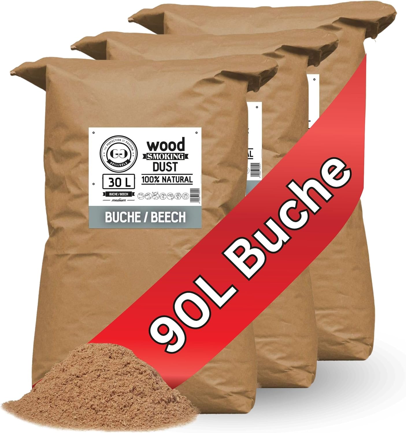 Дървен прах за пушене Grillgold. За опушване и студено опушване на риба, месо и зеленчуци. В хартиени торбички, комплект от 90 литра бук.